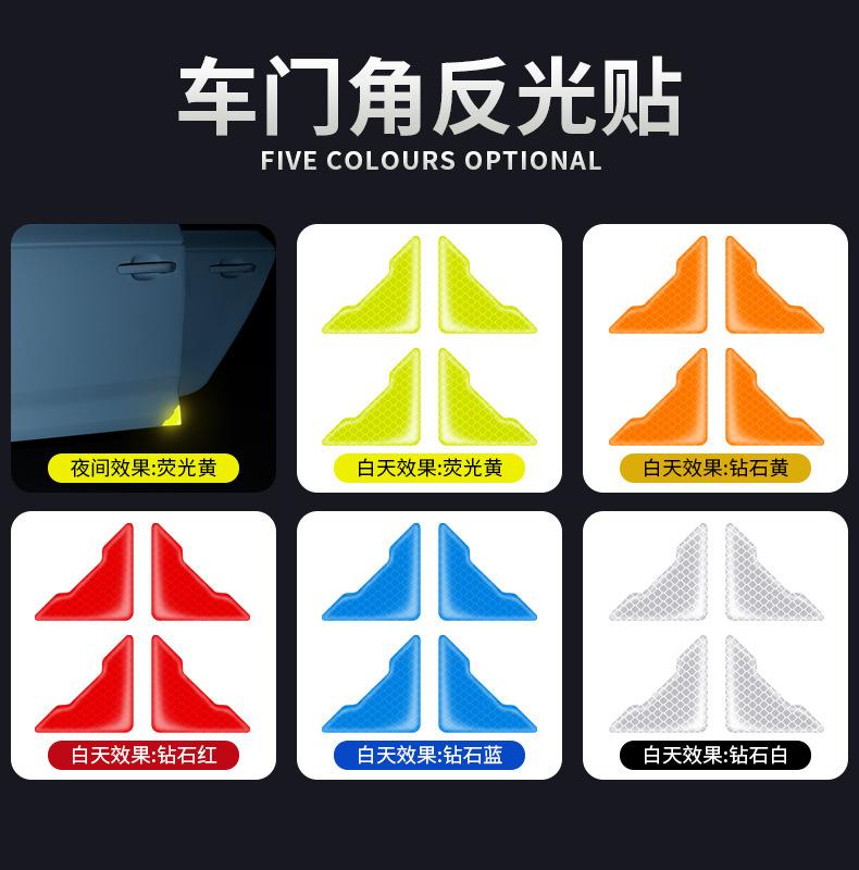 Pegatinas reflectantes de fábrica, advertencia de seguridad para coche, pegatinas reflectantes para coche, pegatinas anticolisión para esquinas de puertas de coche, pegatinas decorativas.