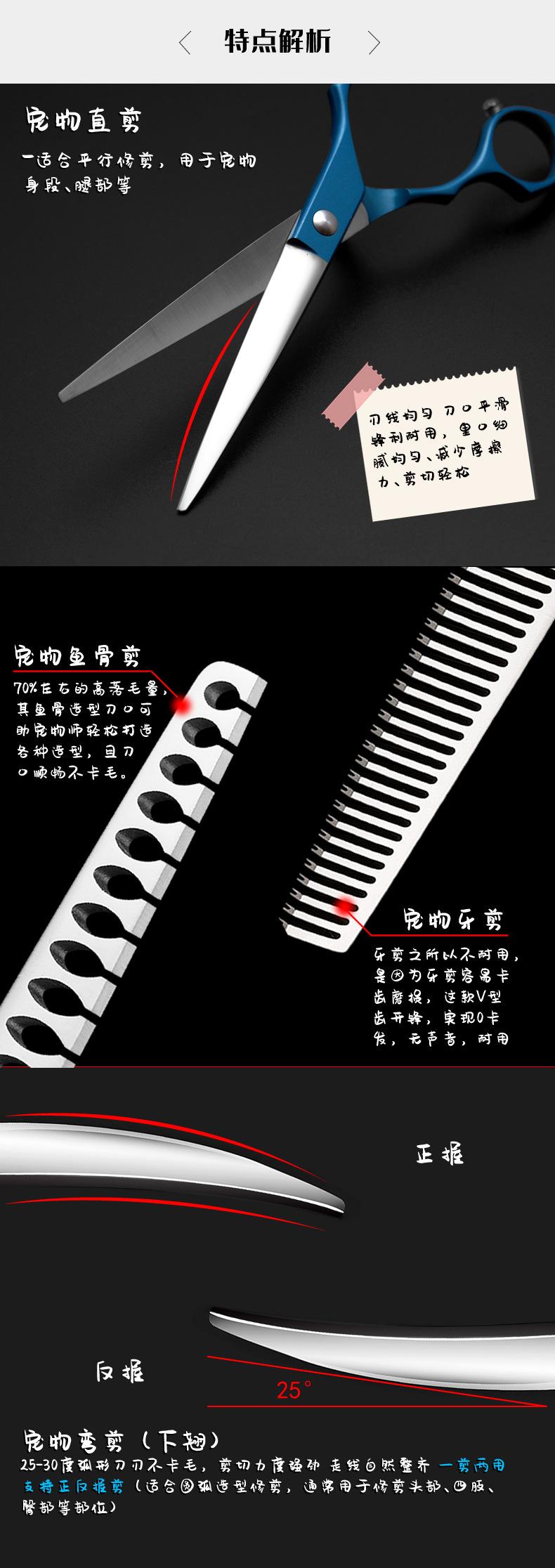 | Descripción de la función (función) | Este juego de tijeras para mascotas está cuidadosamente hecho de acero inoxidable de alta calidad, con un fino acabado superficial y tratamiento térmico al vacío para garantizar el afilado de las tijeras para mascotas. Cuenta con artesanía importada, calidad de exportación y precios de venta nacionales.Los atributos de conjunto perfectos pueden satisfacer los requisitos de estilo del esteticista, son unas tijeras de peluquería para mascotas con las que los peluqueros de mascotas están satisfechos. |
