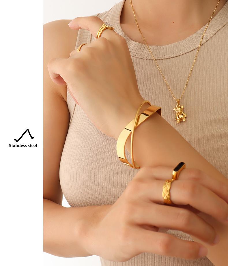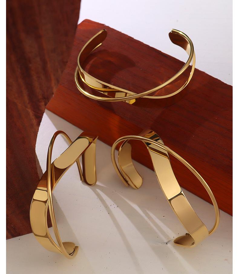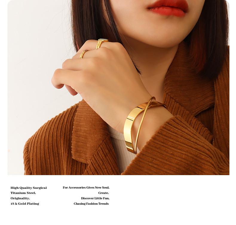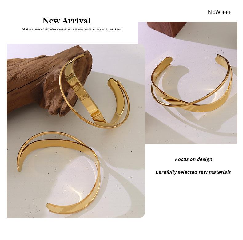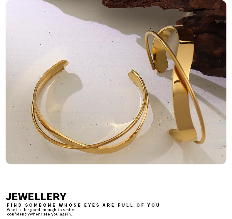 Pulsera cruzada de temperamento simple estilo ins europeo y americano, pulsera abierta lisa de nicho, acero de titanio chapado en oro de 18 quilates para mujer Z195