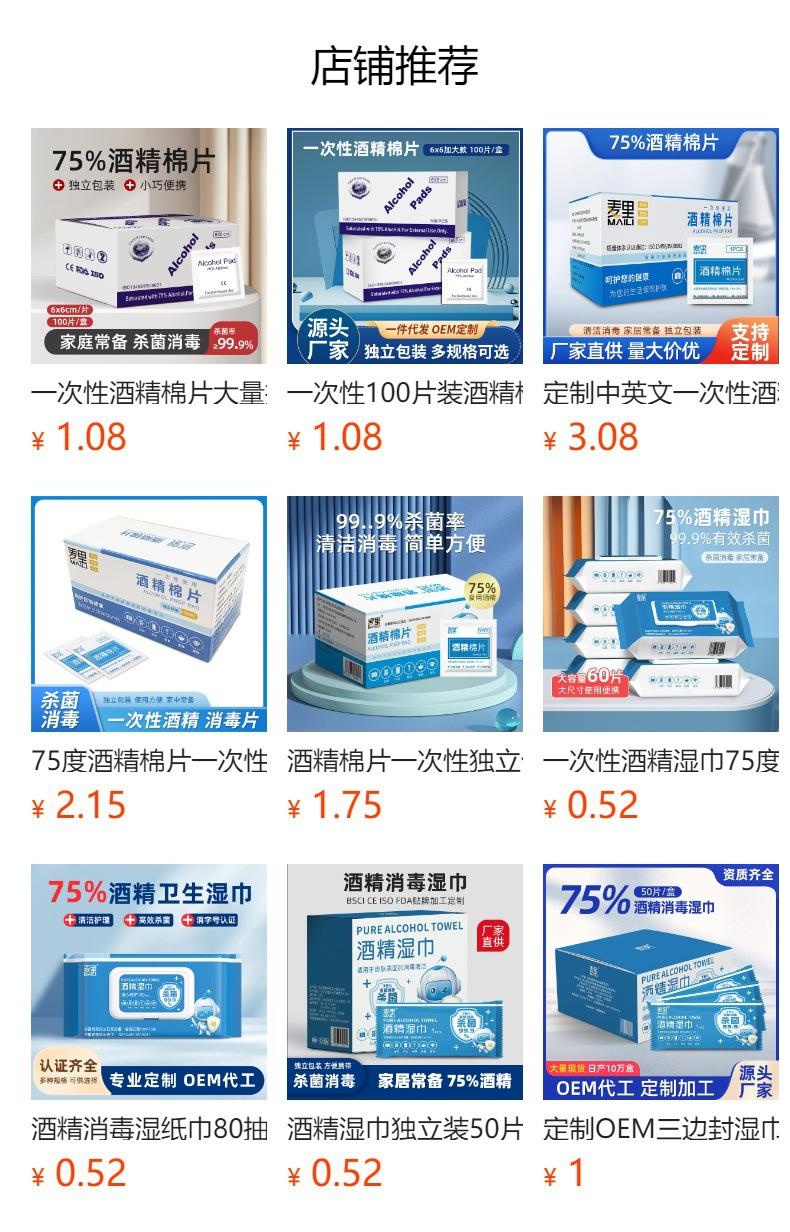 3*6cm alcohol cotton sheets in 102 pieces in bag [this product is in full english and is for export samples only for foreign trade companies]