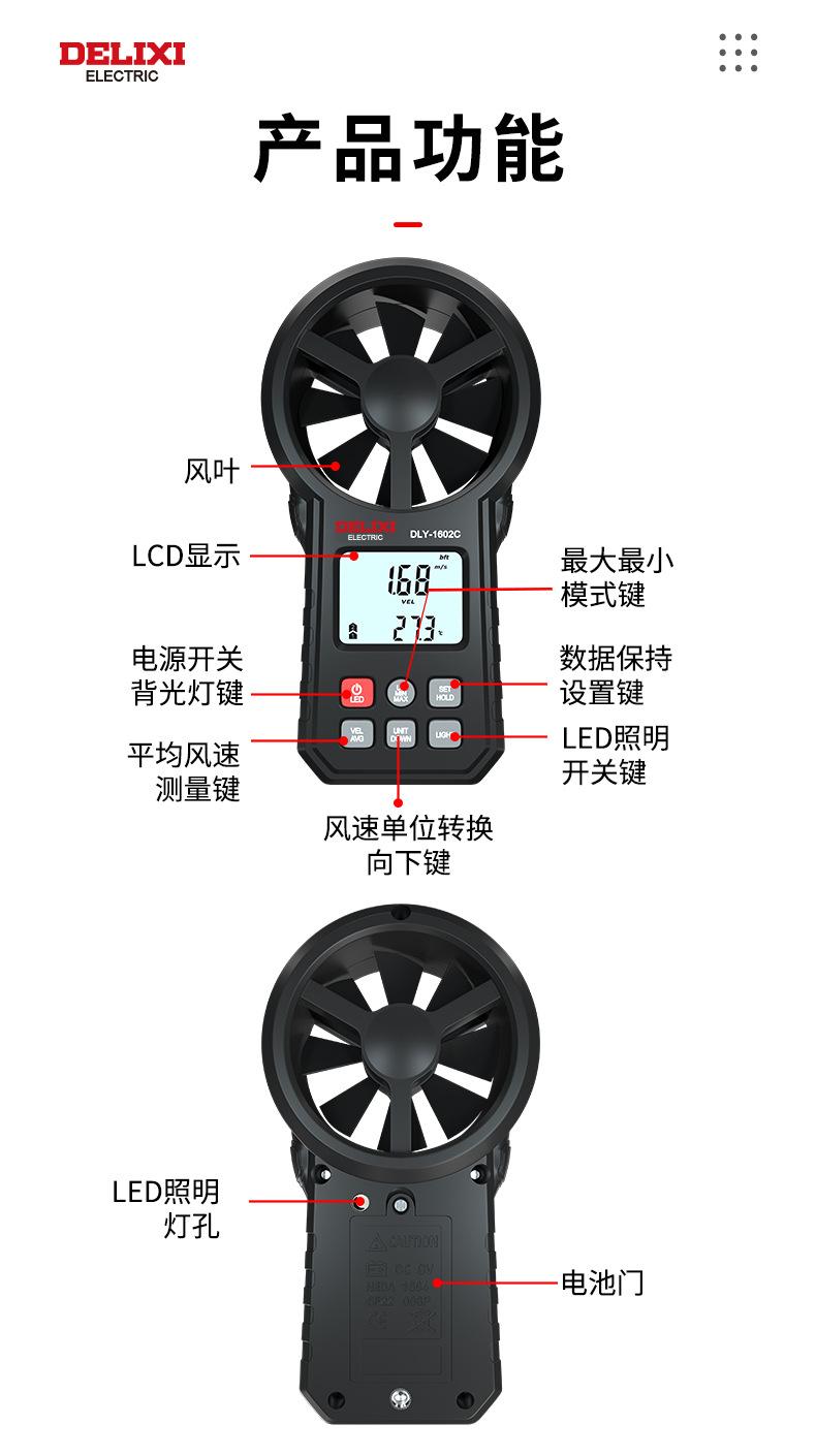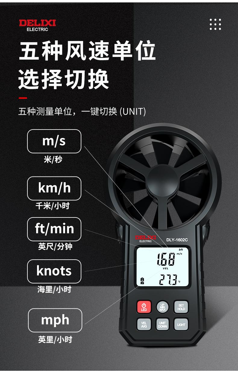 Anemómetro Digital Delixi Probador de Dirección y Velocidad del Viento Temperatura y Humedad Medidor de Velocidad del Viento Venta al por Mayor Alta Precisión
