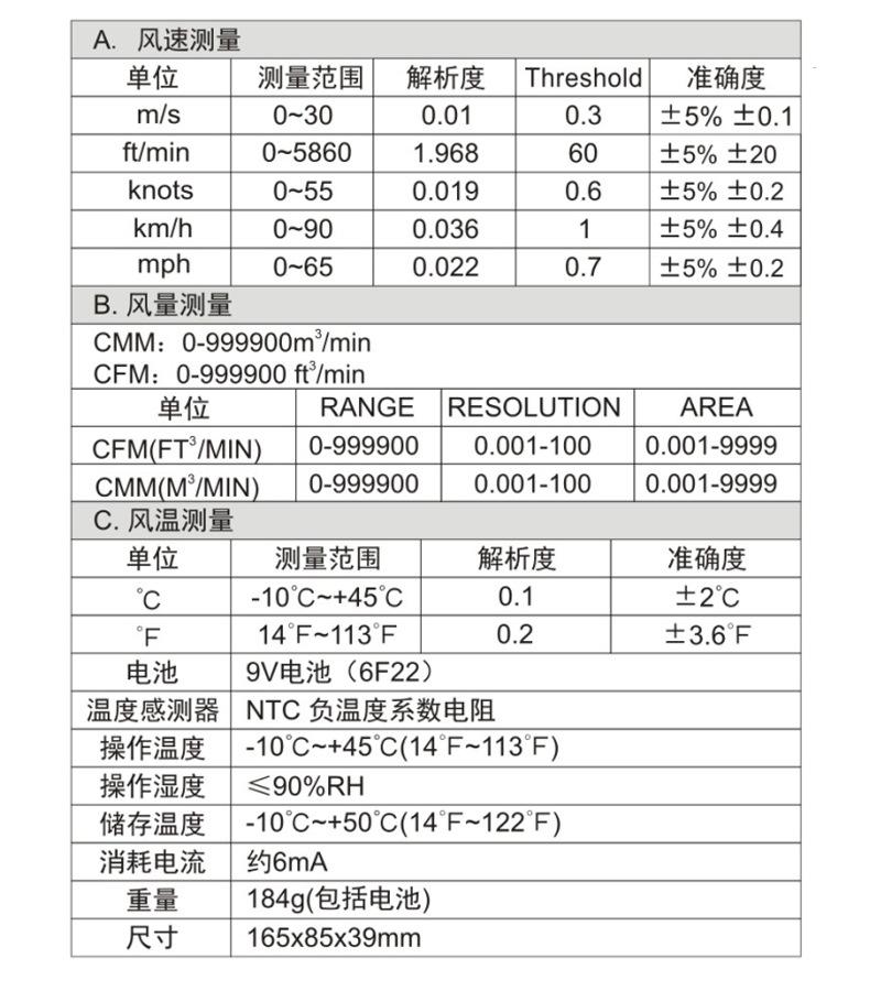 Eight-blade integrated wind meter 1602C (measurable wind speed, air volume and air temperature)