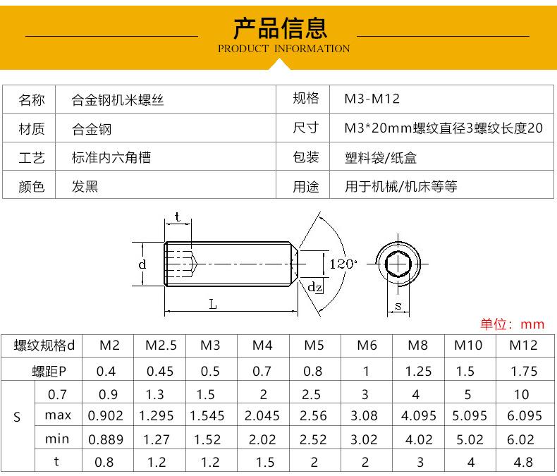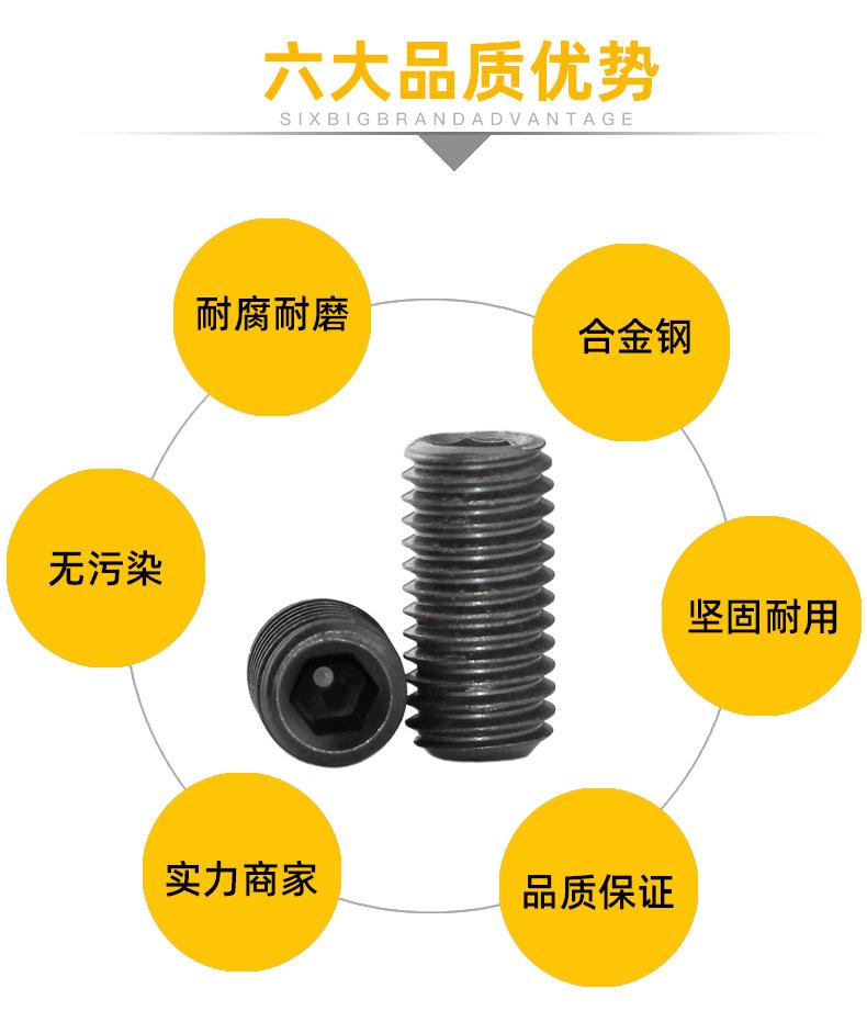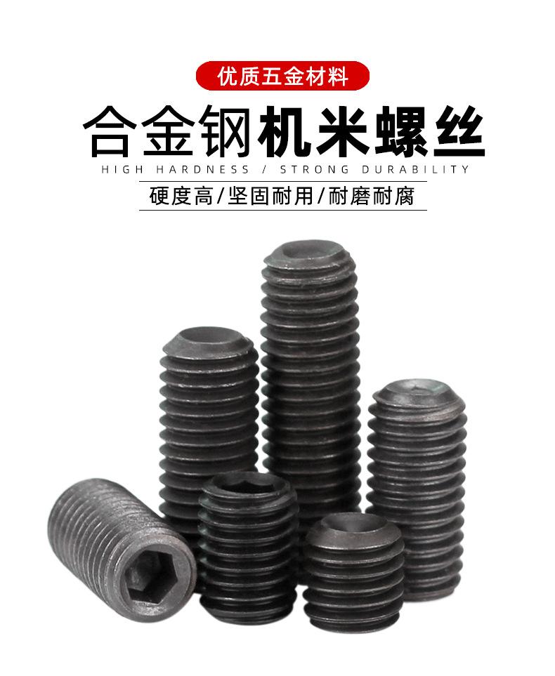 Tornillo de máquina de extremo cóncavo de grado 12.9 negro, tornillo de máquina sin cabeza con enchufe hexagonal M2-M16 con alambre superior Kimi Bolt