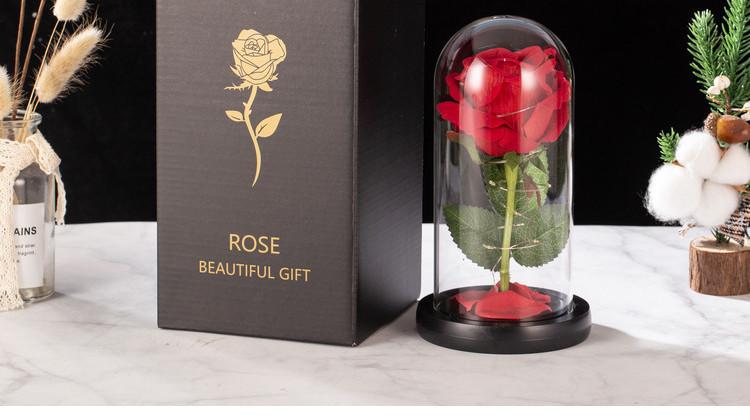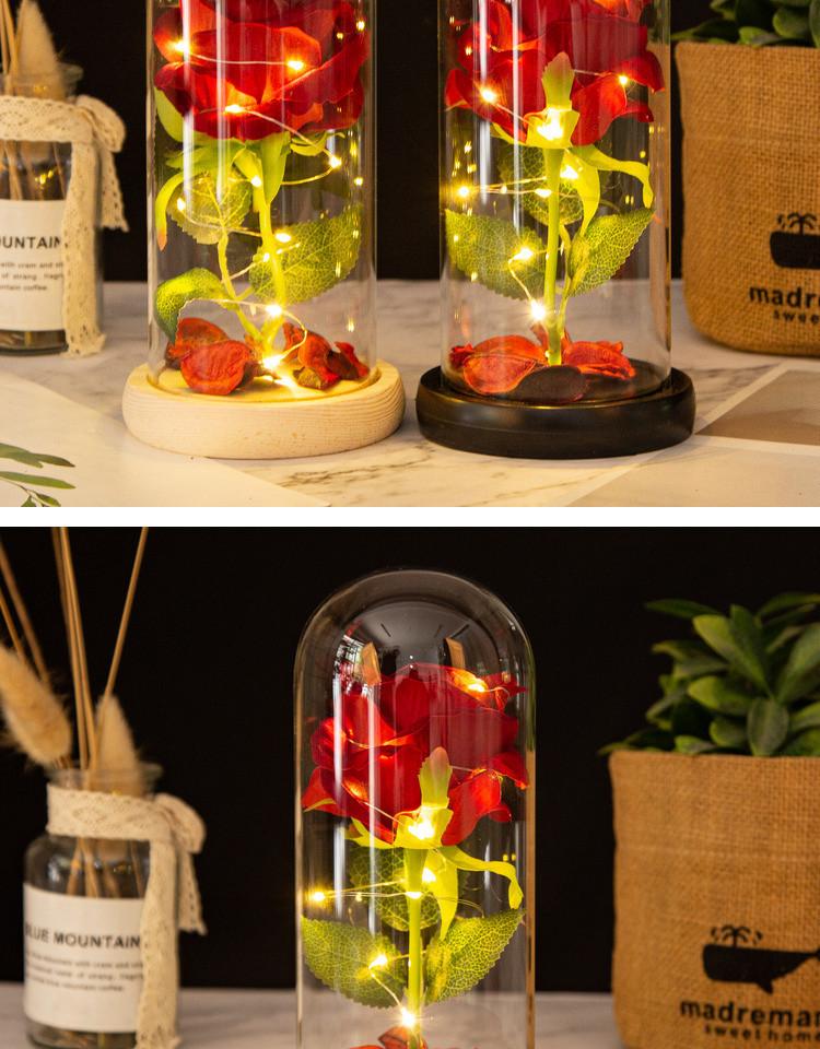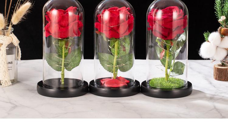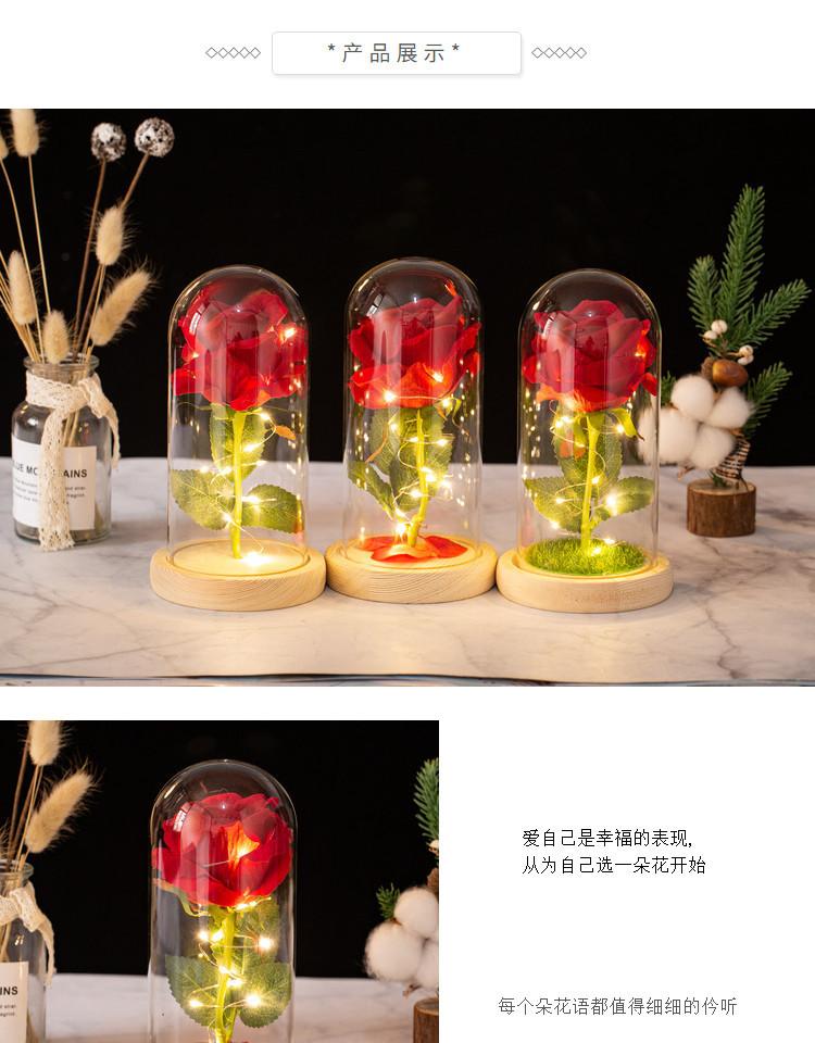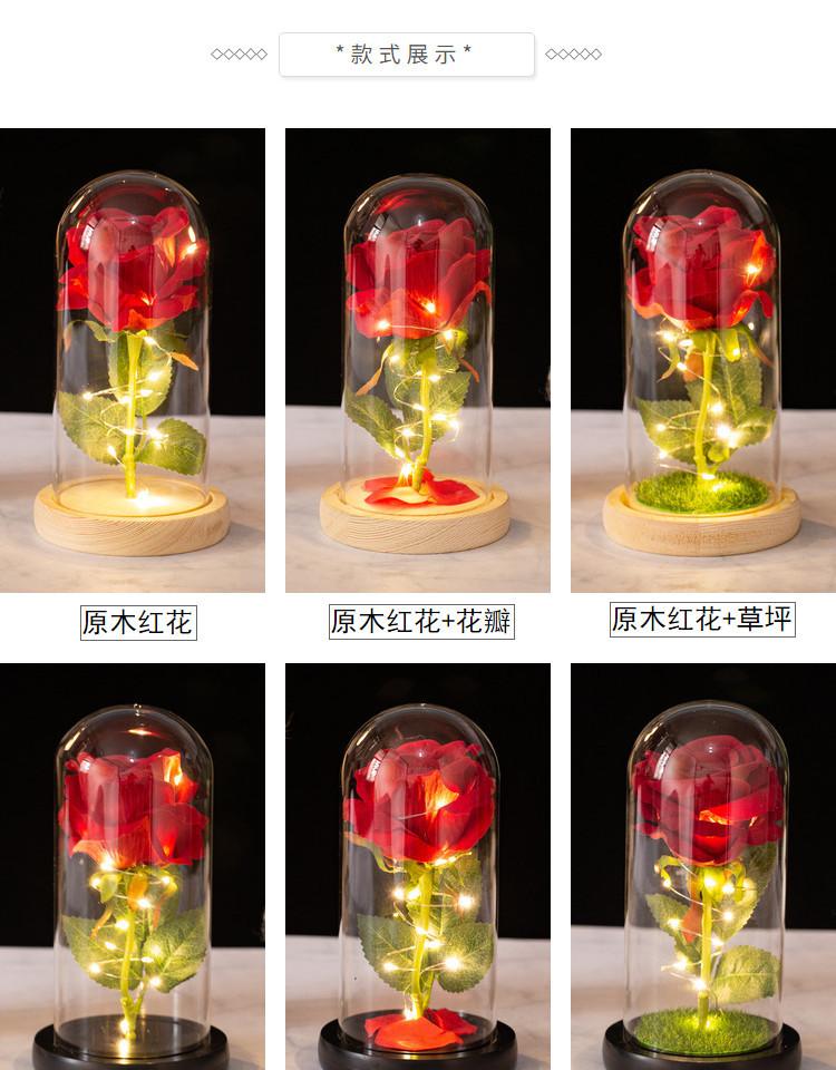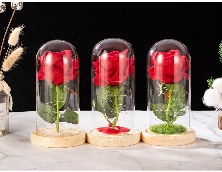 Cubierta de vidrio al tacto rosa inmortal LED flor artificial luminosa creativa regalo adornos al por mayor para el Día de San Valentín Chino