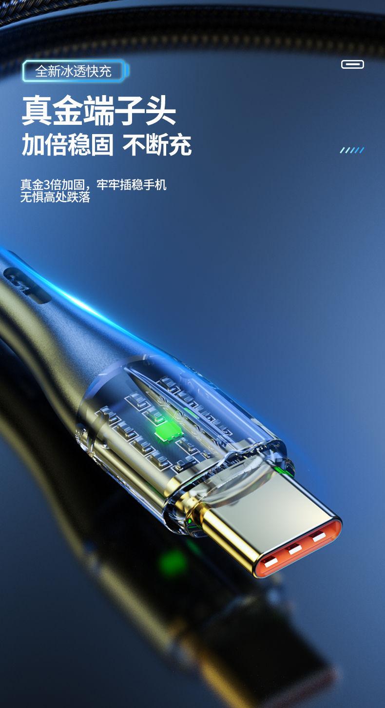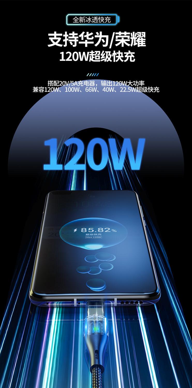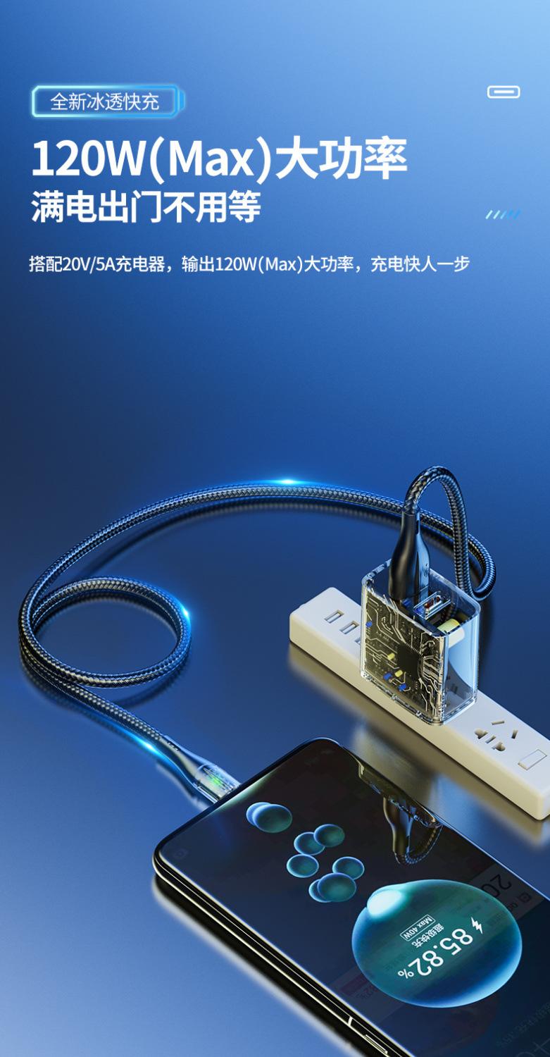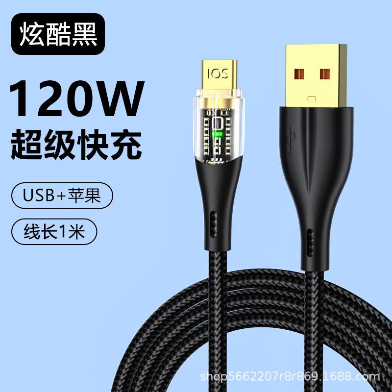 Cable de carga trenzado C a C de 120 W Adecuado para Apple Tipo-C Huawei 6A Carga Rápida Cable de Datos Pd con Luz Carga Rápida Pd