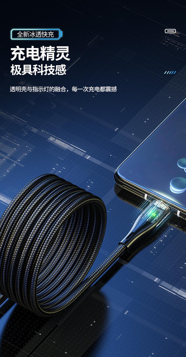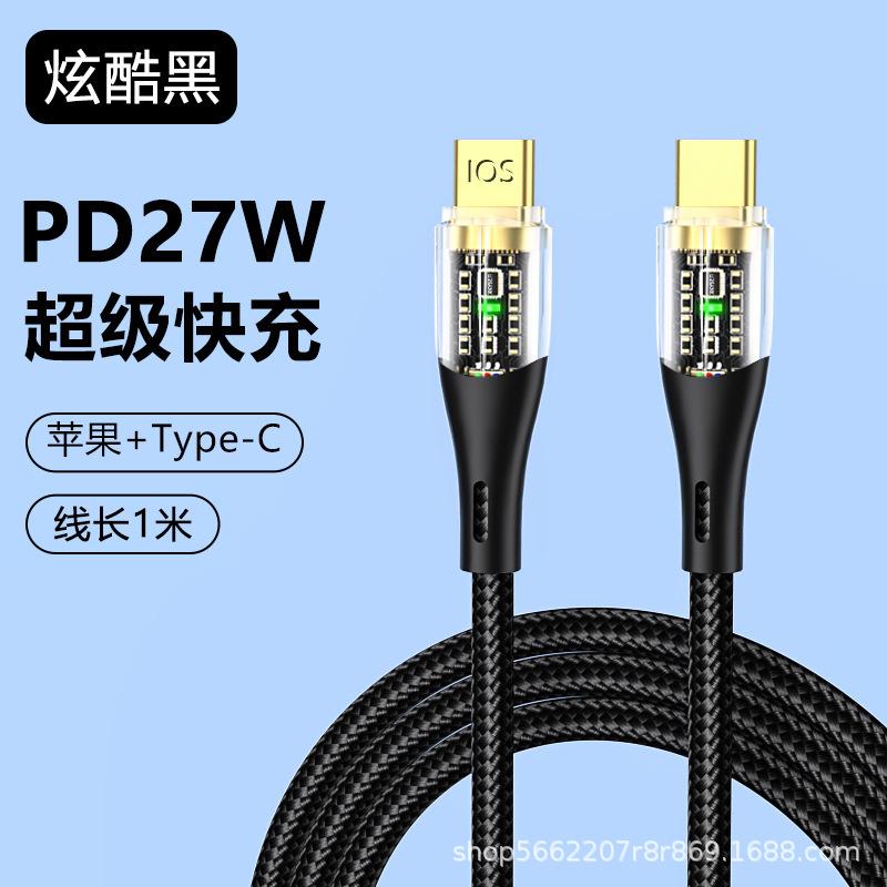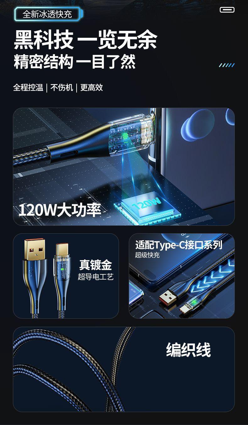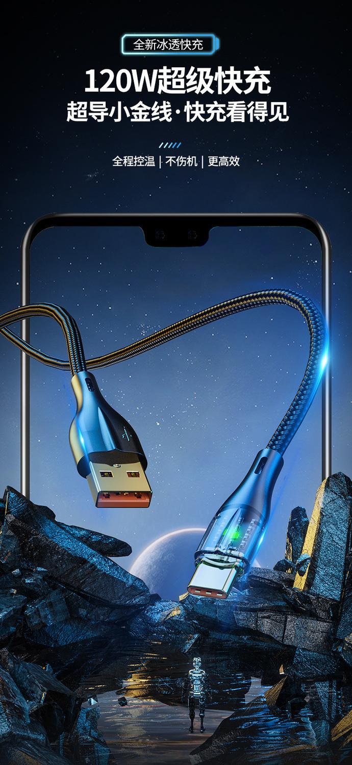 Cable de carga trenzado C a C de 120 W Adecuado para Apple Tipo-C Huawei 6A Carga Rápida Cable de Datos Pd con Luz Carga Rápida Pd