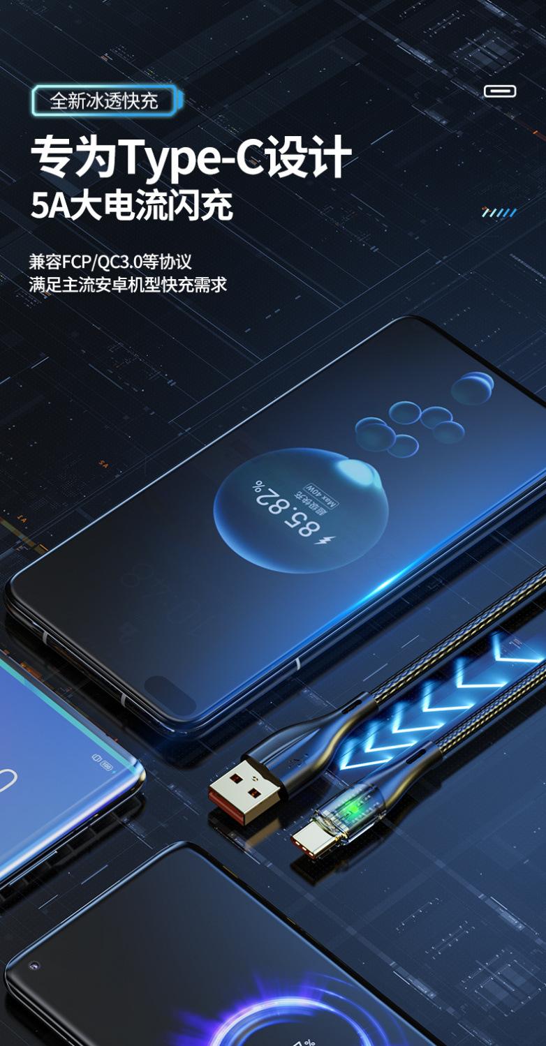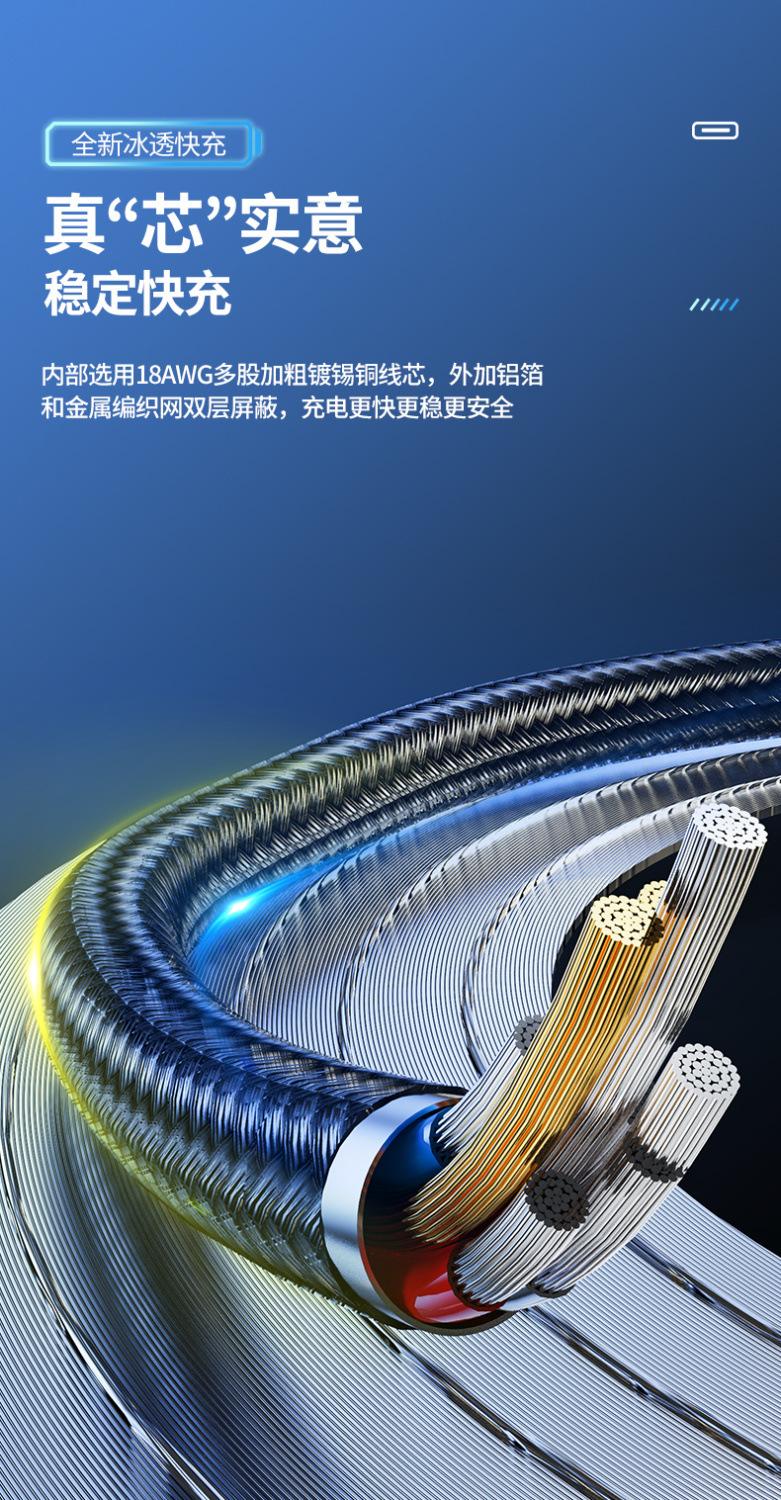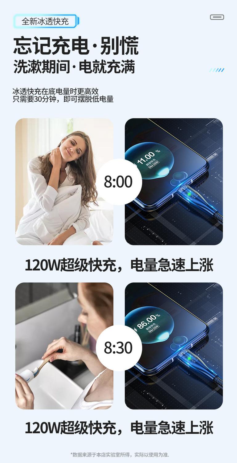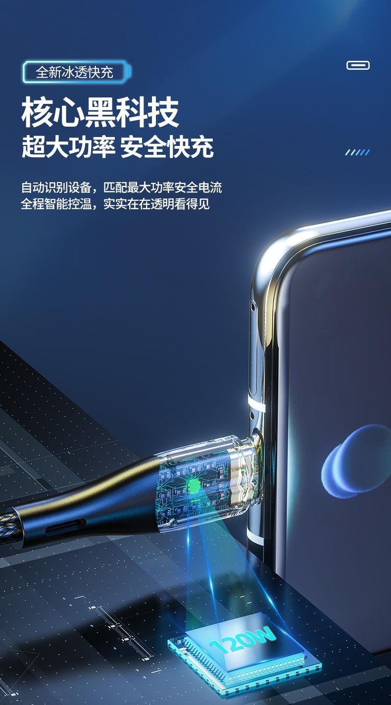 Cable de carga trenzado C a C de 120 W Adecuado para Apple Tipo-C Huawei 6A Carga Rápida Cable de Datos Pd con Luz Carga Rápida Pd