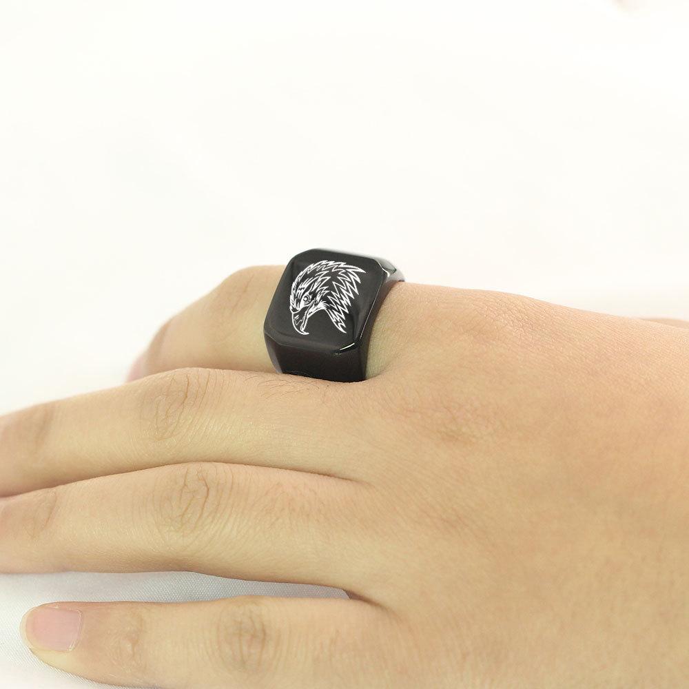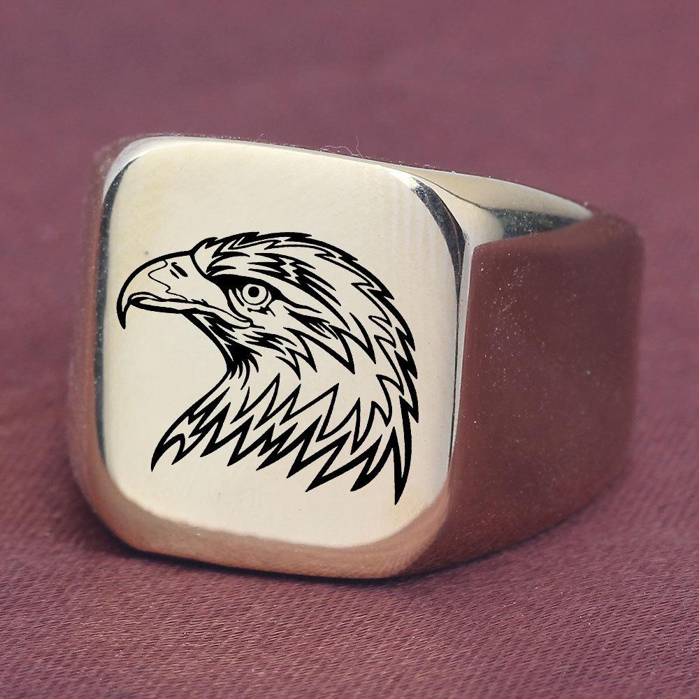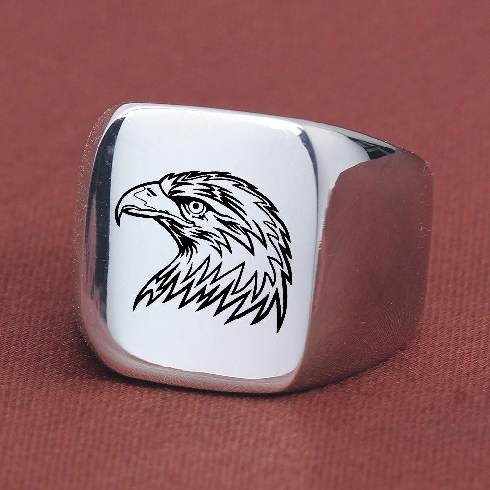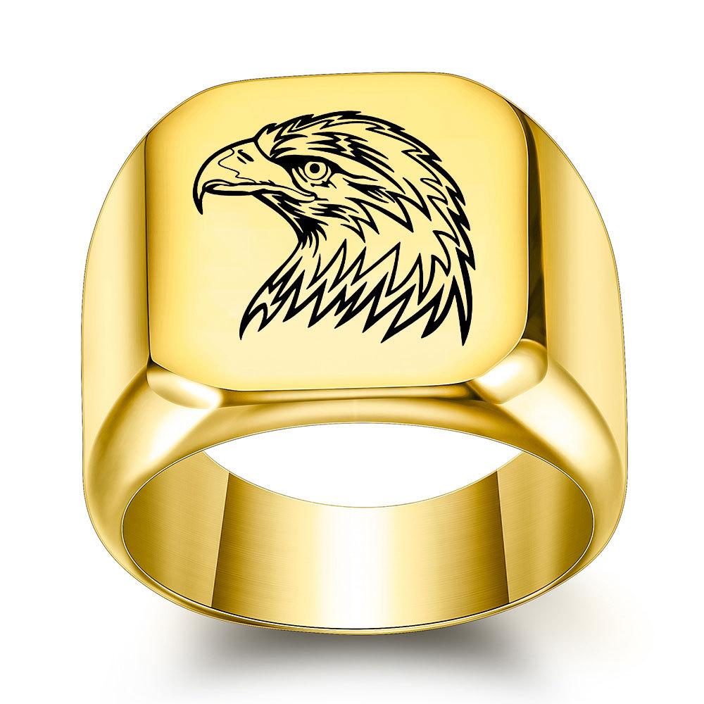 Anillo de Cuerpo Desnudo de Acero de Titanio con Cabeza de Águila Creativo Europeo y Americano para Hombre Retro Punk Cuadrado 18mm Estudiante Moderno Hombre Venta al por Mayor