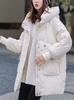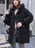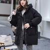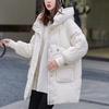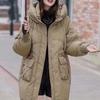 Ropa de algodón de plumón para mujer, abrigo de invierno de talla mediana y larga, chaqueta holgada con capucha popular coreana, venta al por mayor, 2023