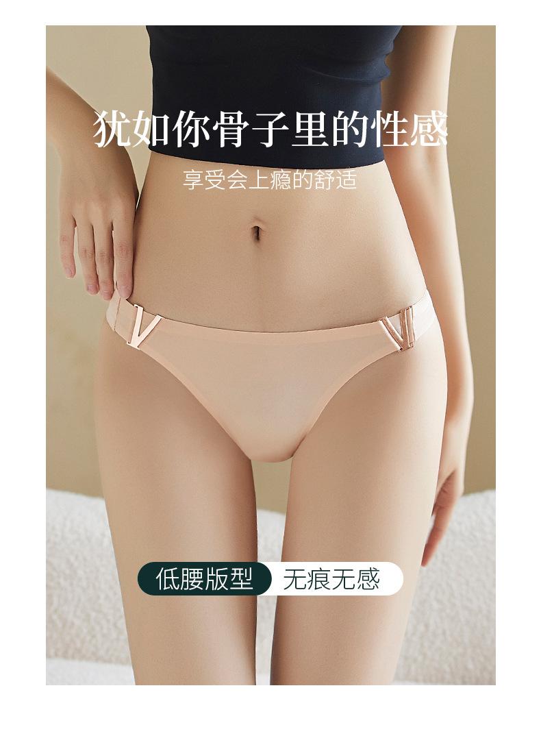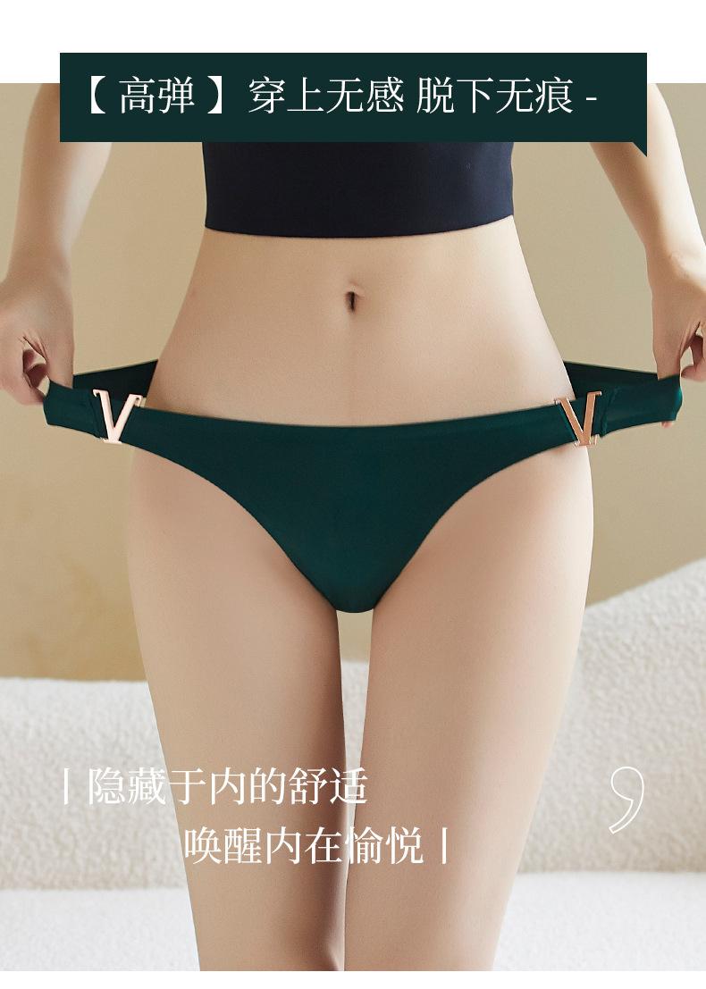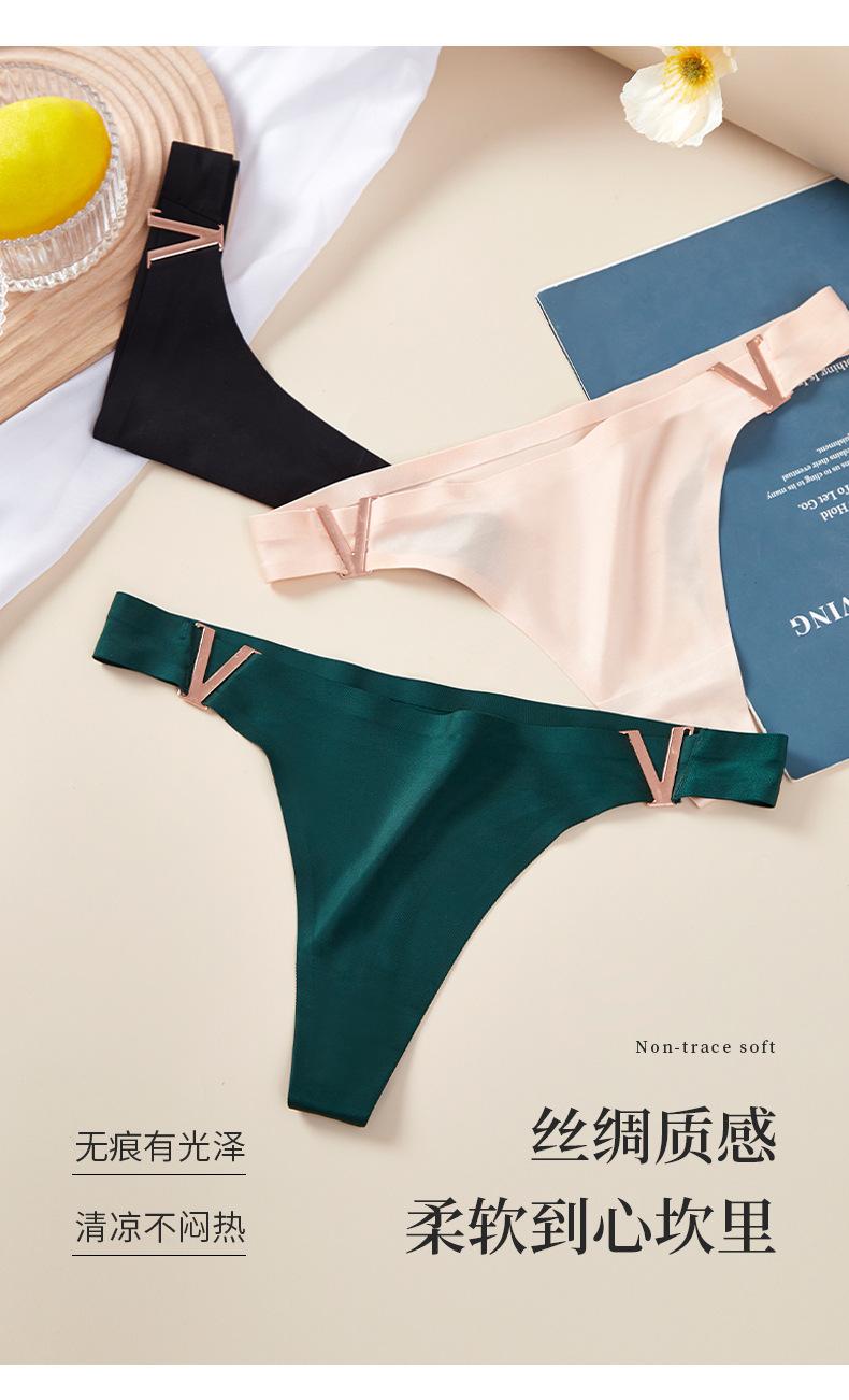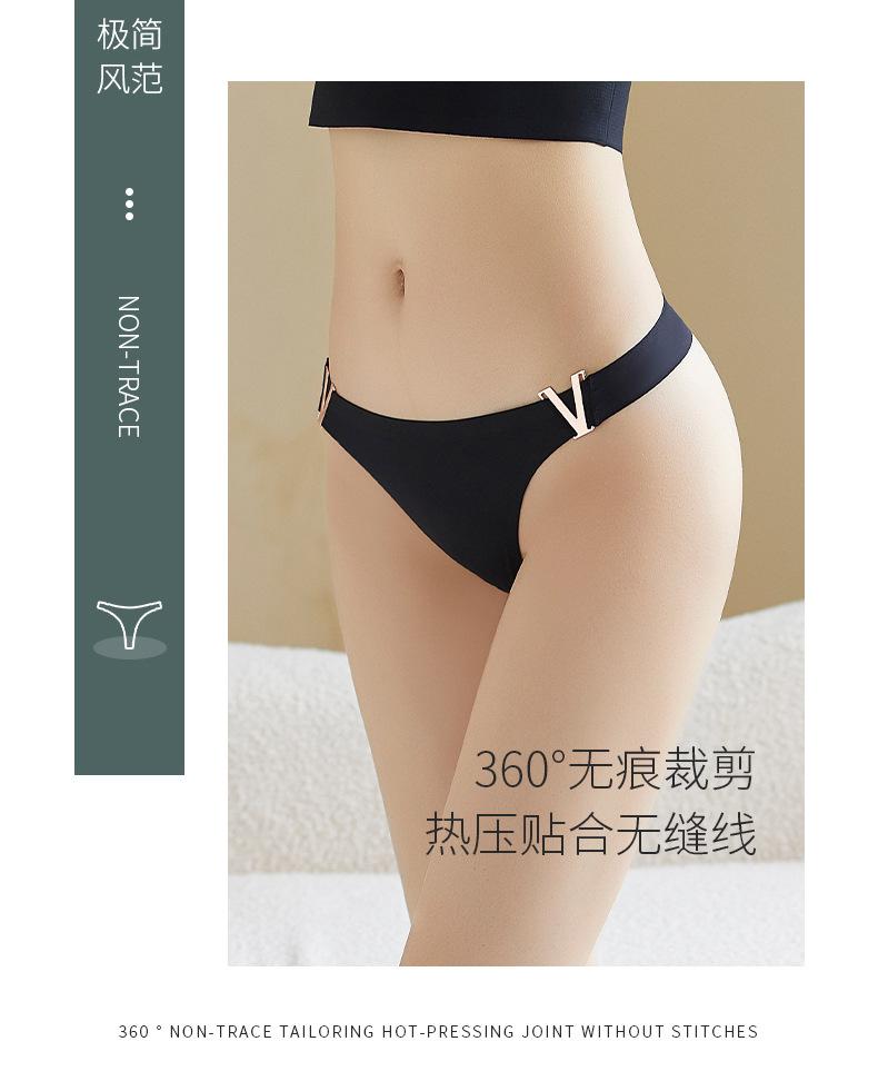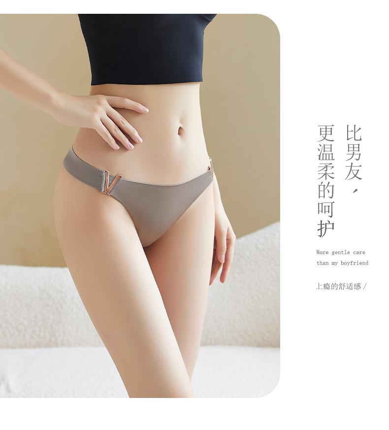 Tanga sexy de metal en forma de V europea y americana, ropa interior de seda de hielo, sin costuras, levanta glúteos, cintura baja, corte alto, calzones de media copa para mujer