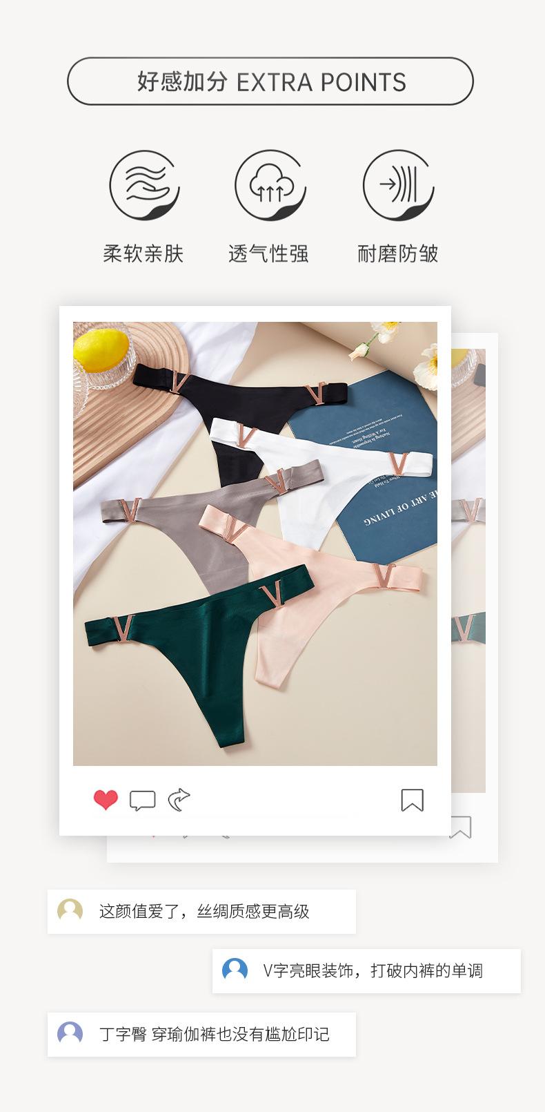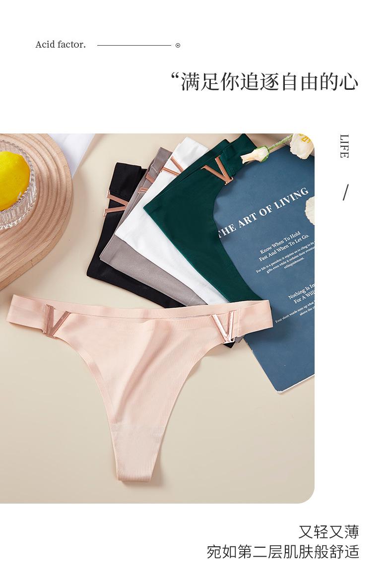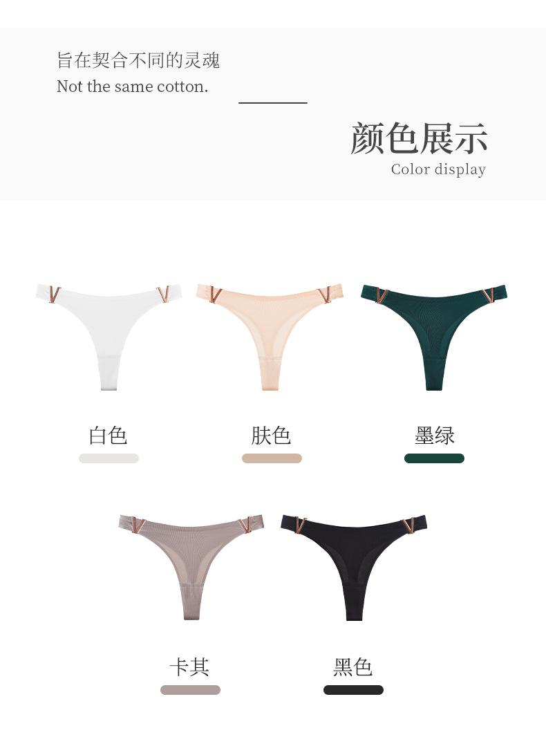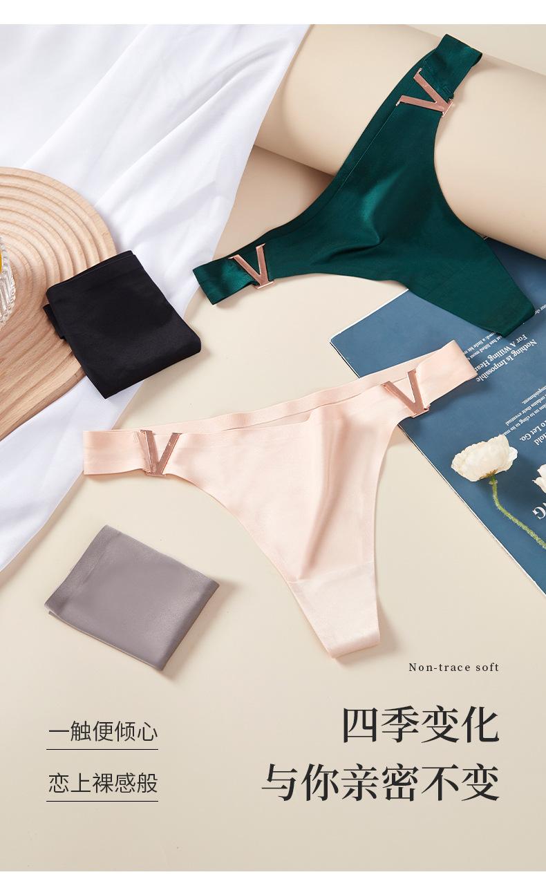 Tanga sexy de metal en forma de V europea y americana, ropa interior de seda de hielo, sin costuras, levanta glúteos, cintura baja, corte alto, calzones de media copa para mujer