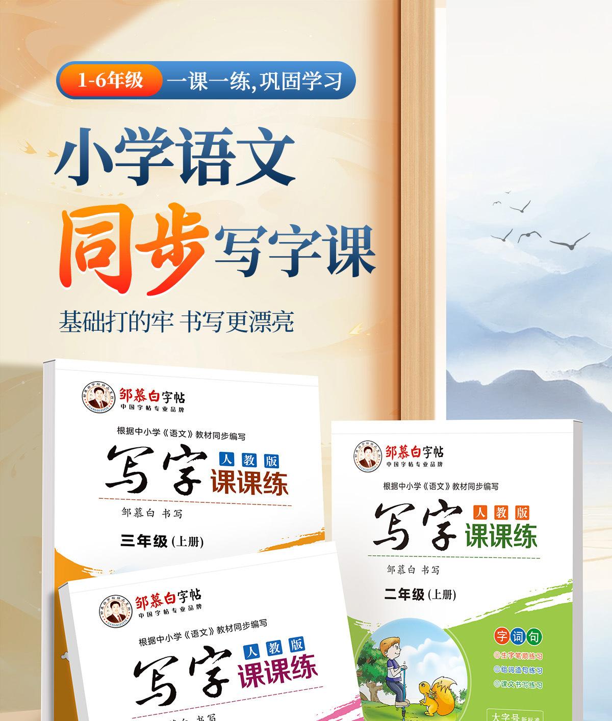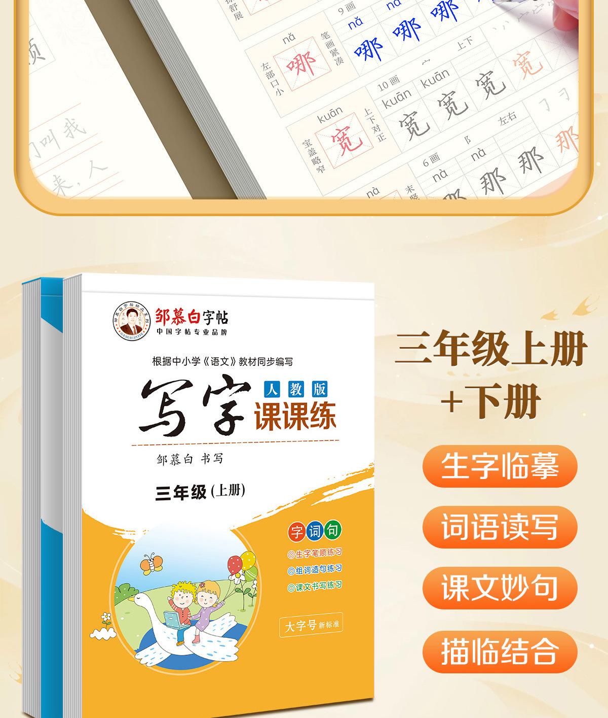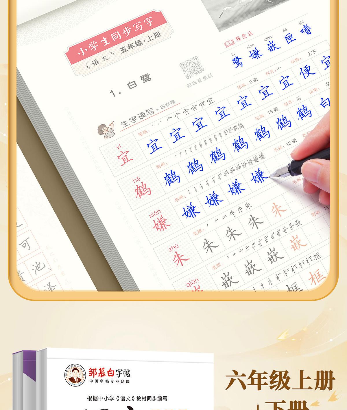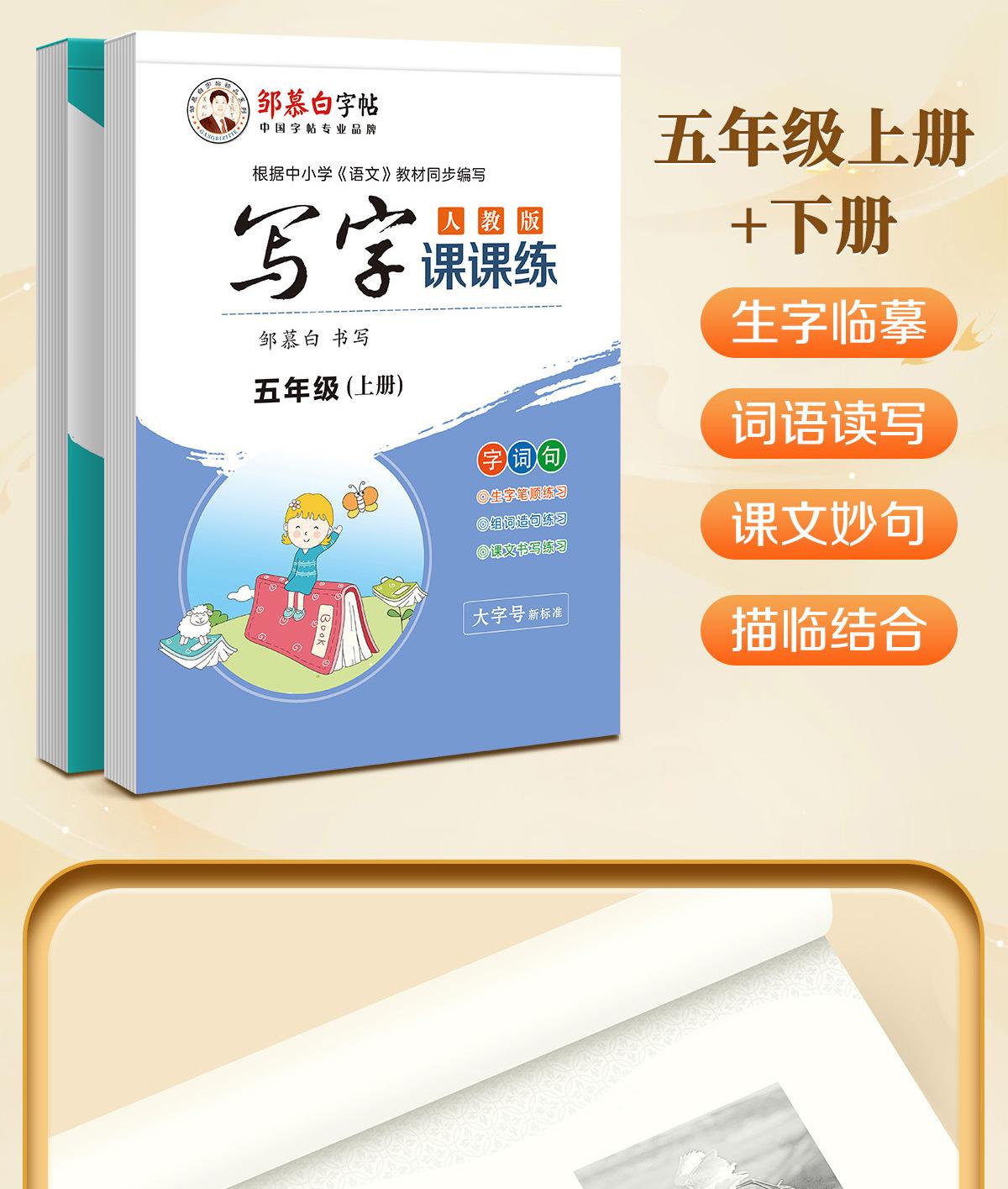 Edición de educación popular Zou Mubai, cuaderno de escritura en chino para estudiantes de 1.º a 6.º grado. Libro de texto de práctica de escritura en clase, cuaderno sincrónico, escritura regular.