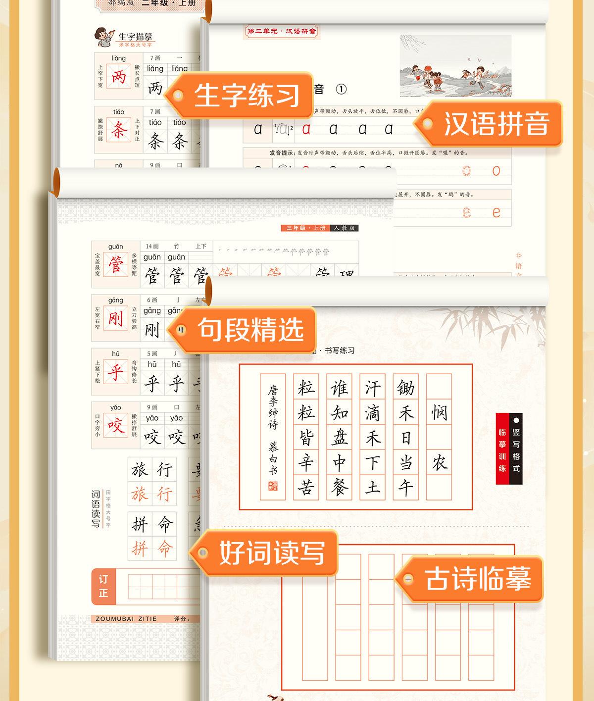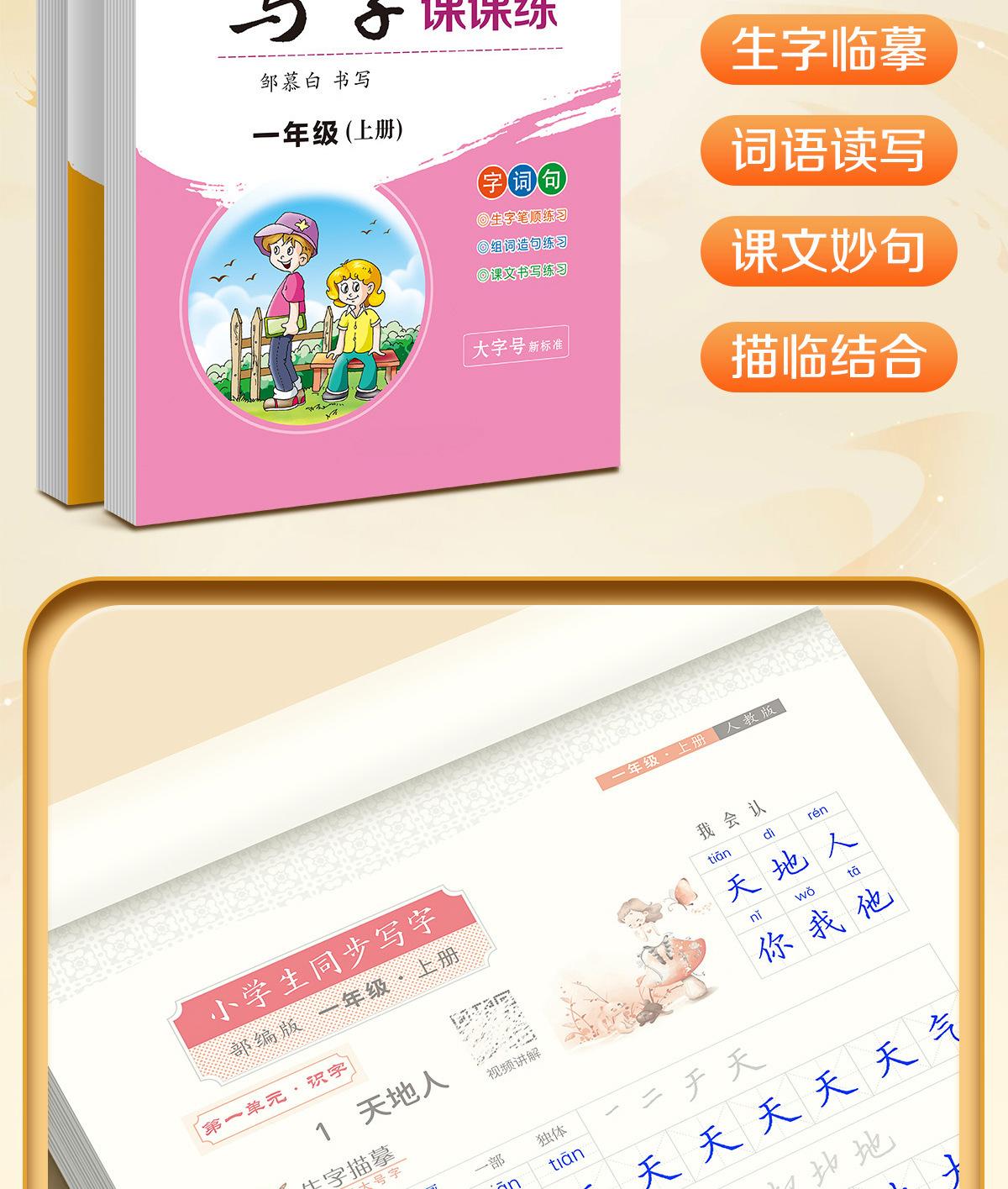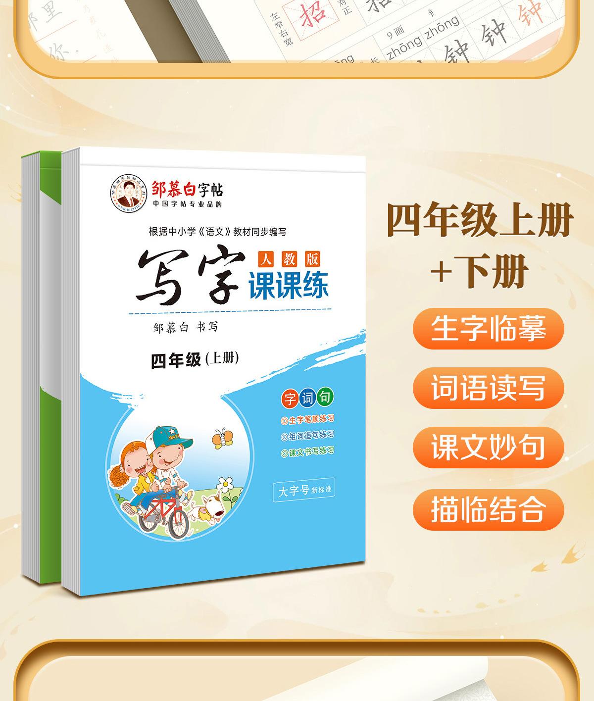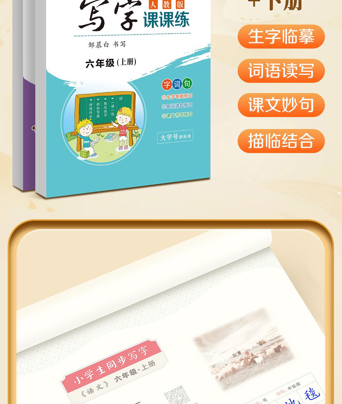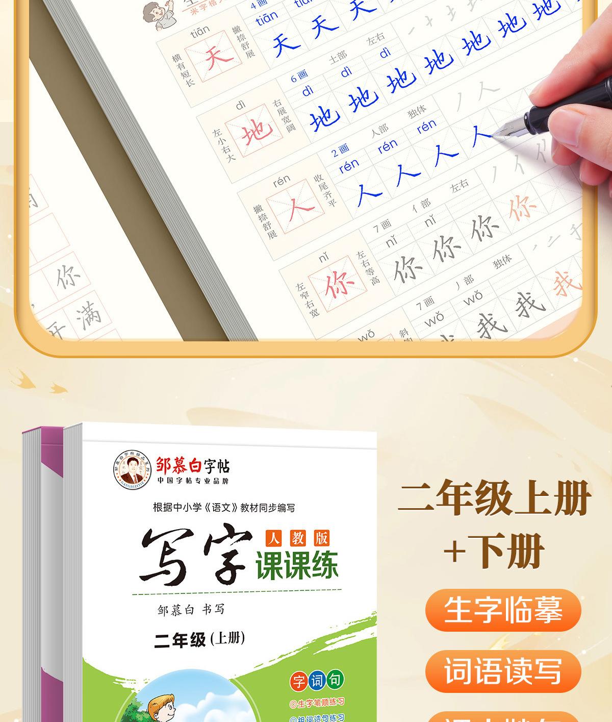 Edición de educación popular Zou Mubai, cuaderno de escritura en chino para estudiantes de 1.º a 6.º grado. Libro de texto de práctica de escritura en clase, cuaderno sincrónico, escritura regular.