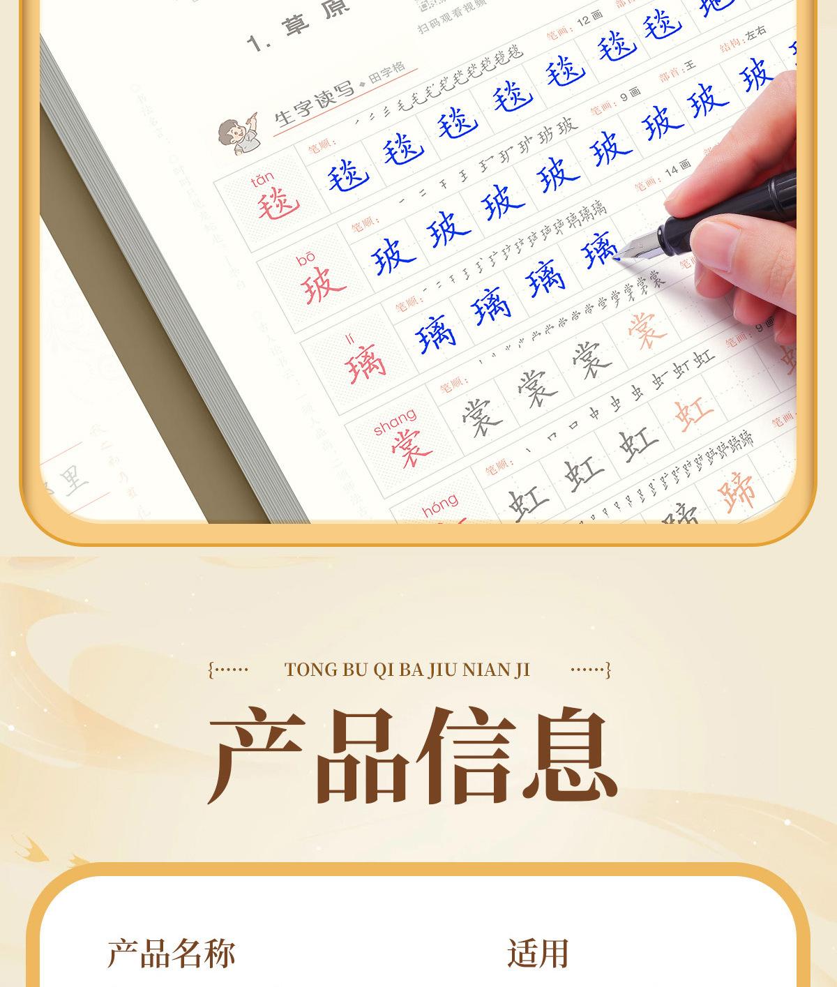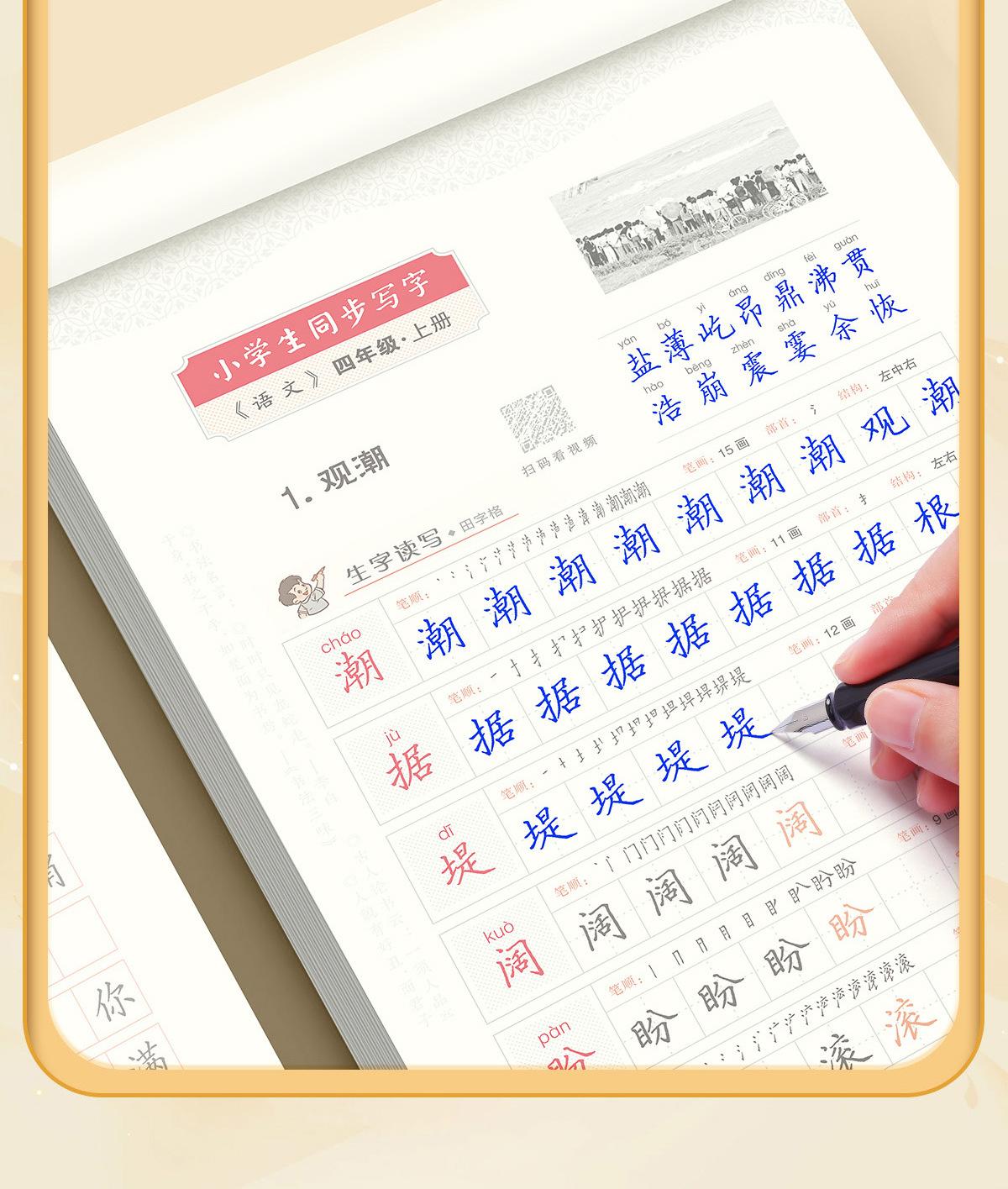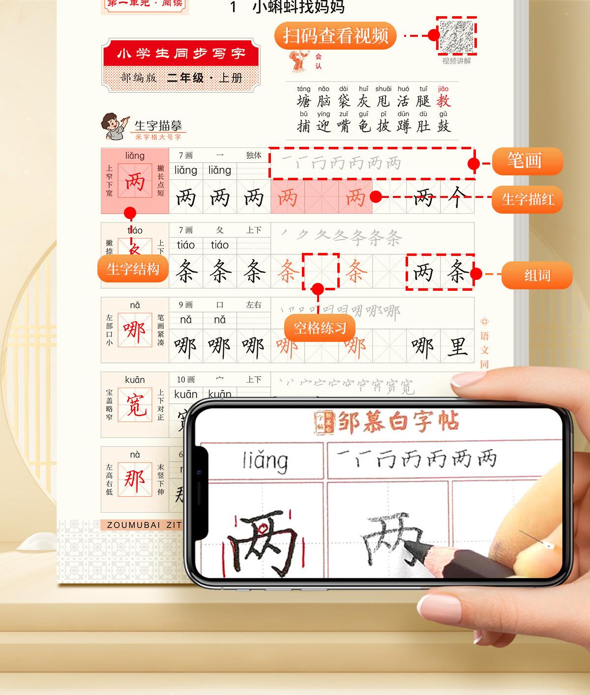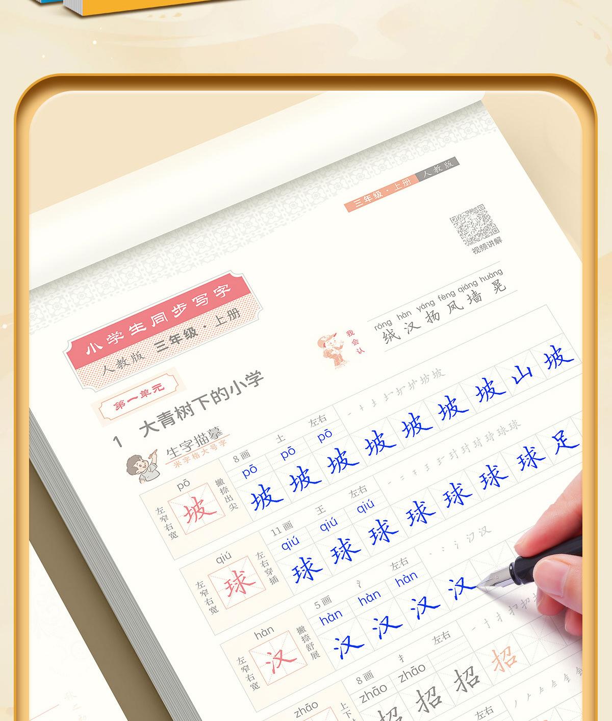 Edición de educación popular Zou Mubai, cuaderno de escritura en chino para estudiantes de 1.º a 6.º grado. Libro de texto de práctica de escritura en clase, cuaderno sincrónico, escritura regular.