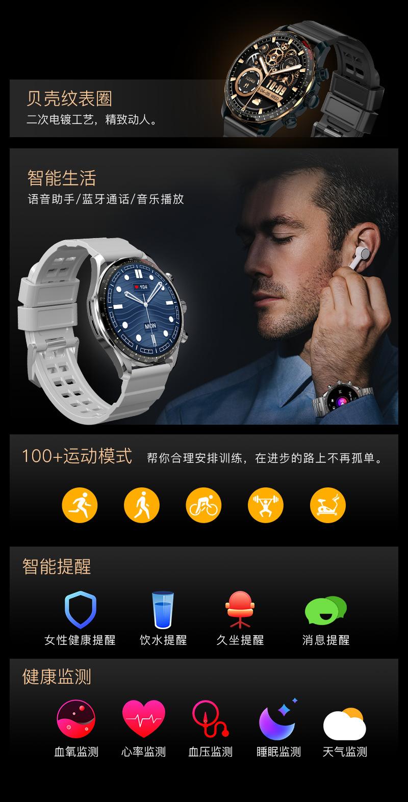 Waterproof, Step counting, Heart rate monitoring, Blood pressure measurement, Social Entertainment, Bluetooth ...