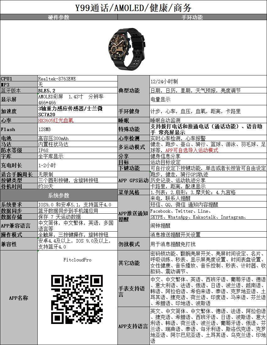Nuevo reloj inteligente Y99 con Bluetooth, pantalla AMOLED, control del ritmo cardíaco y del oxígeno en sangre, resistente al agua y multifuncional, deportivo