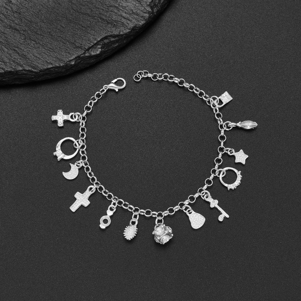 Compra Pulsera multielementos para mujer, estilo europeo y americano, bañada en plata 925, con 13 colgantes, ideal como regalo. al por mayor en Joom.pro