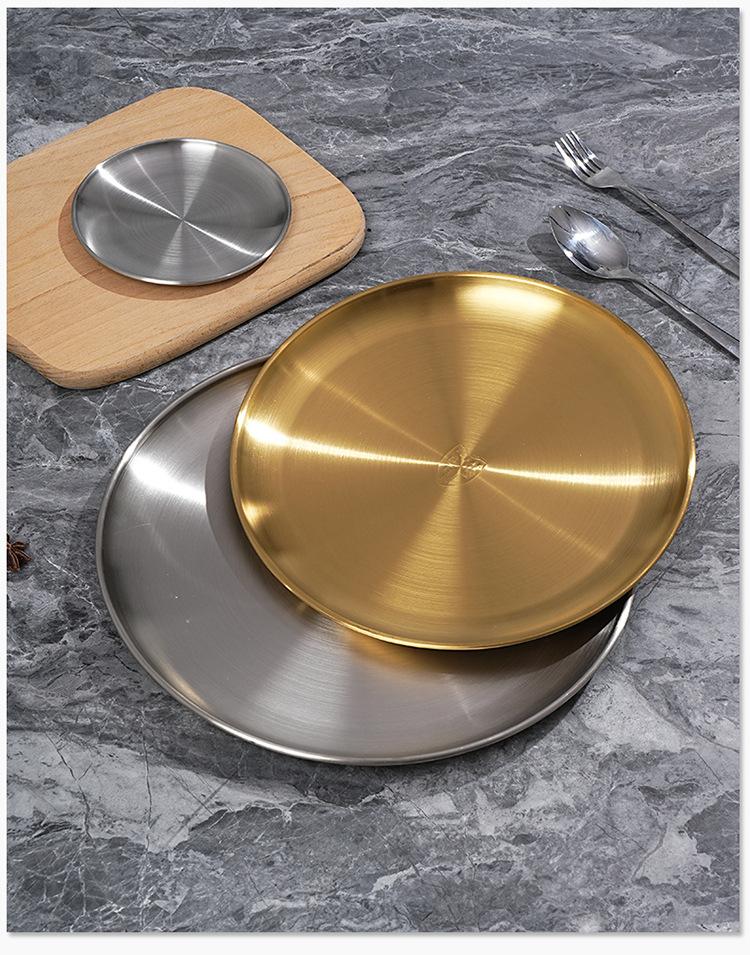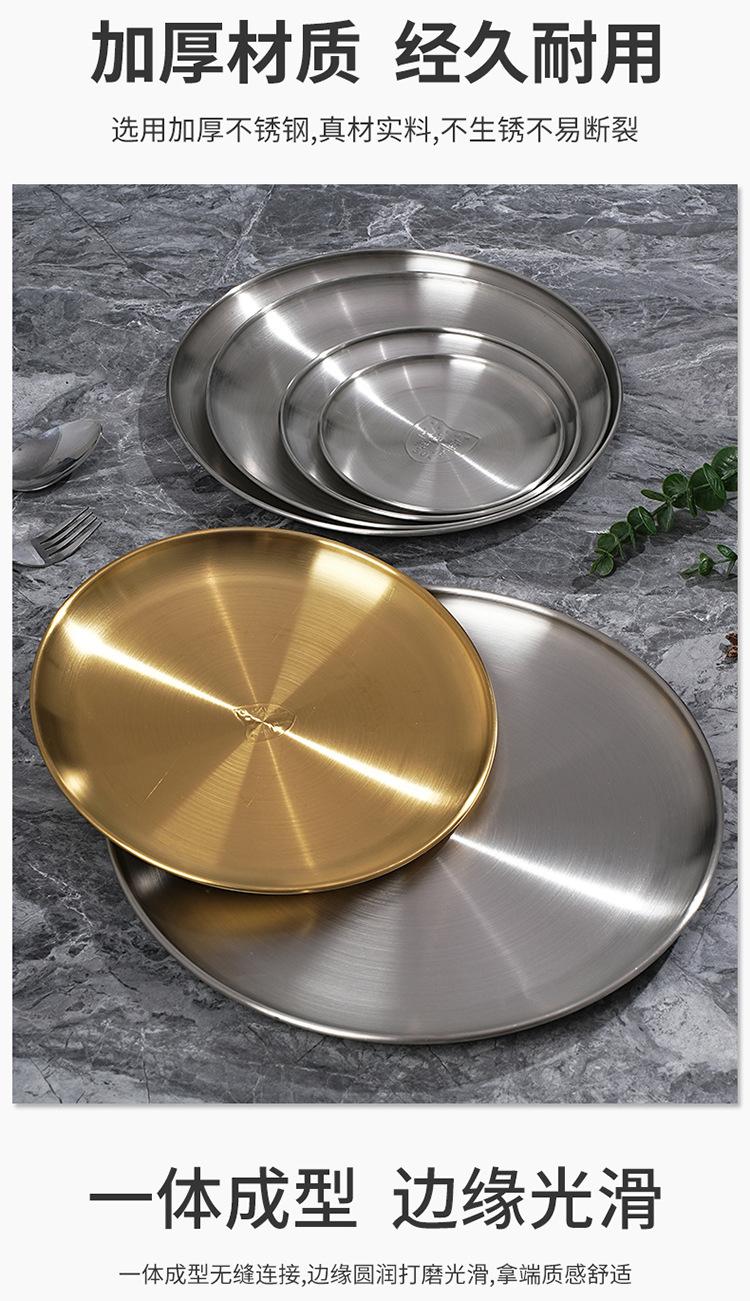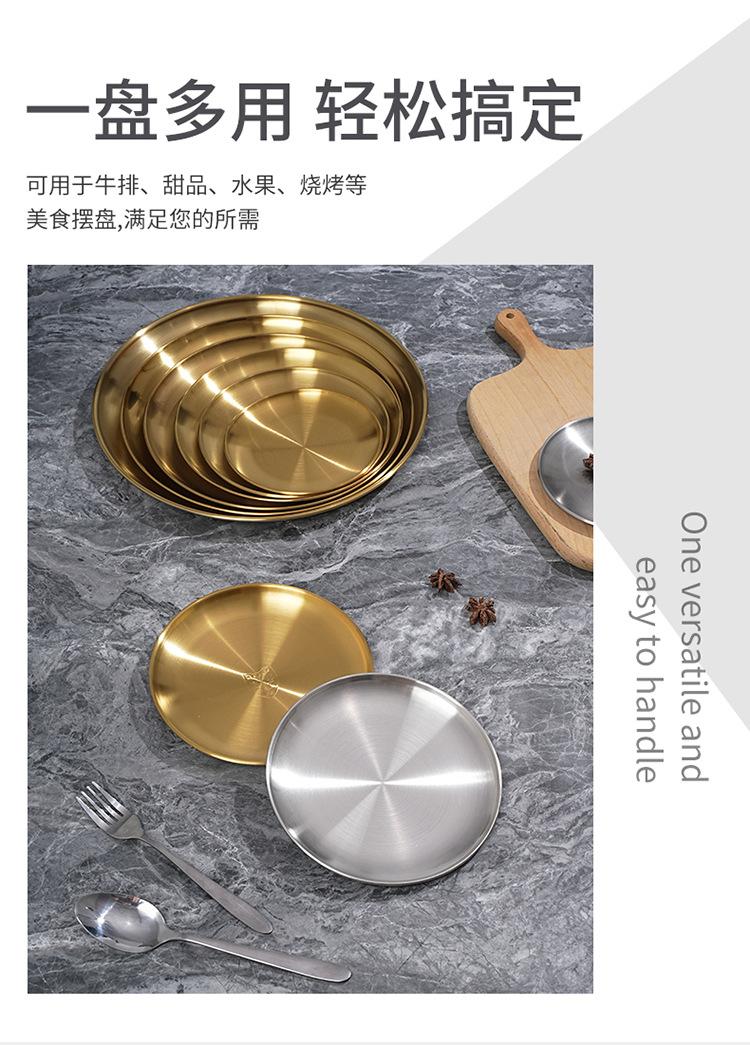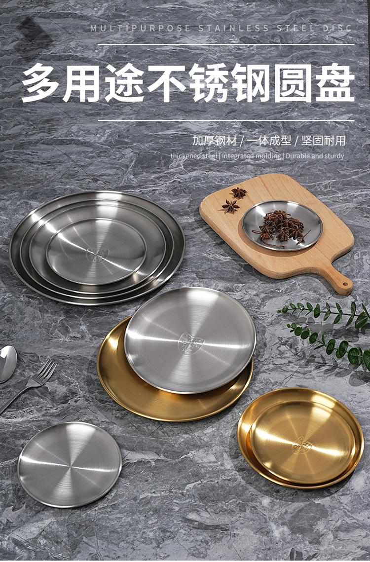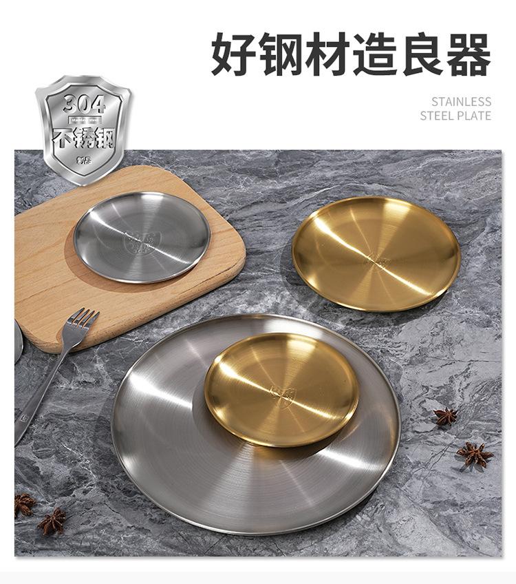 Plato Redondo para Barbacoa Estilo Coreano Acero Inoxidable 304 Bandeja Redonda Plato para Huesos Plato para Bistec Plato para Fruta Plato para Joyas