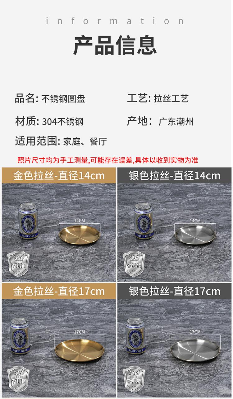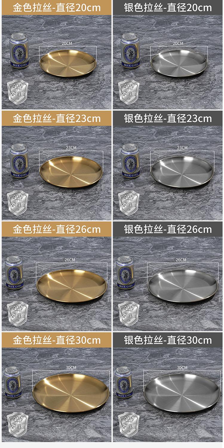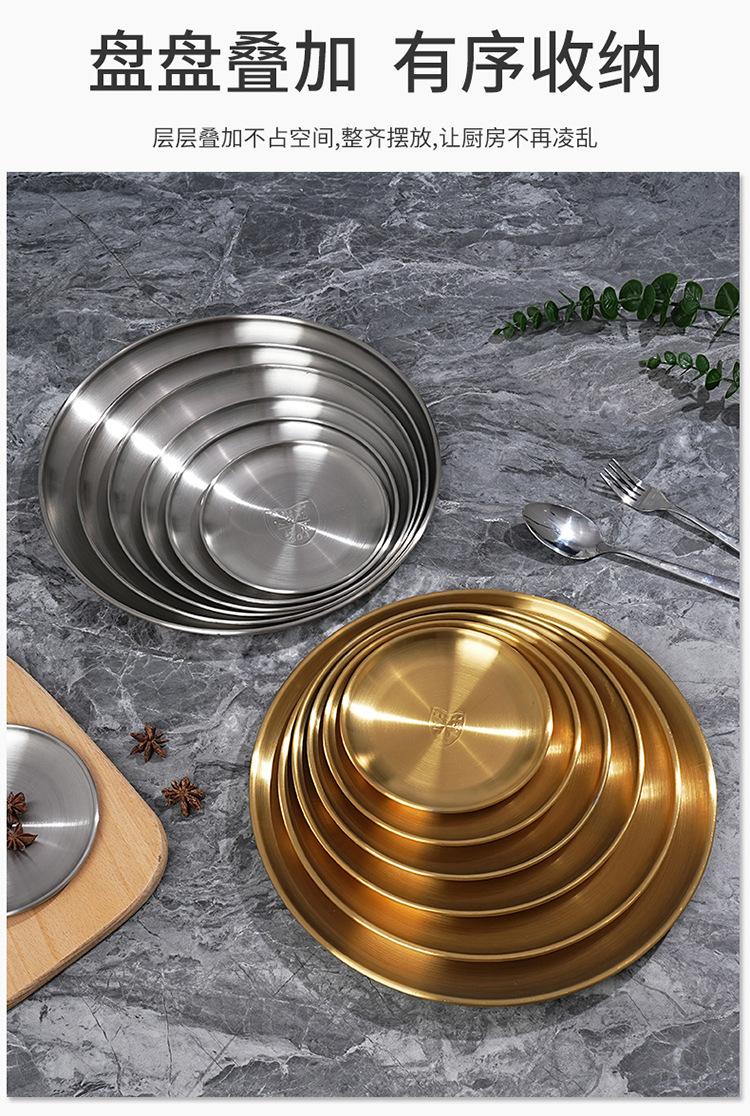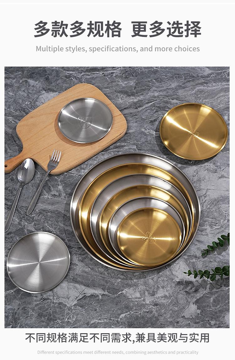 Plato Redondo para Barbacoa Estilo Coreano Acero Inoxidable 304 Bandeja Redonda Plato para Huesos Plato para Bistec Plato para Fruta Plato para Joyas