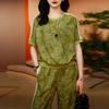 Conjunto de dos piezas de camisa de manga larga con solapa y estampado plisado, estilo europeo y americano, con explosiones de otoño, 9804#2023