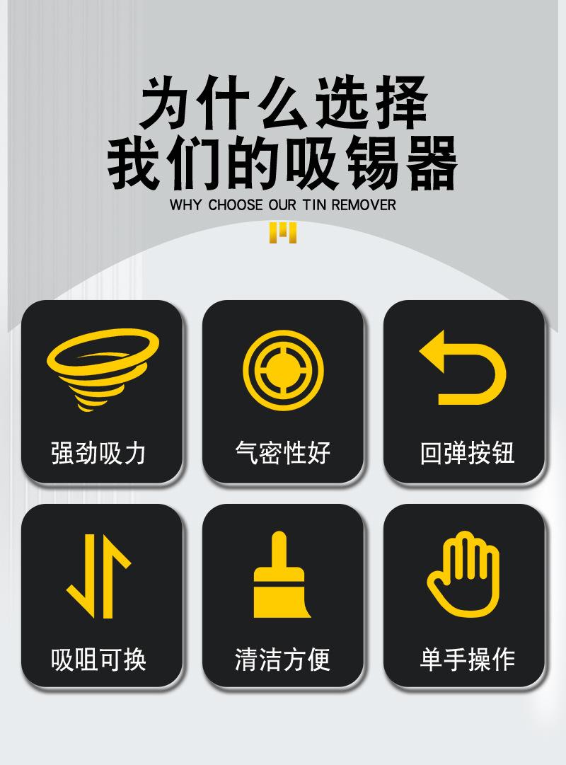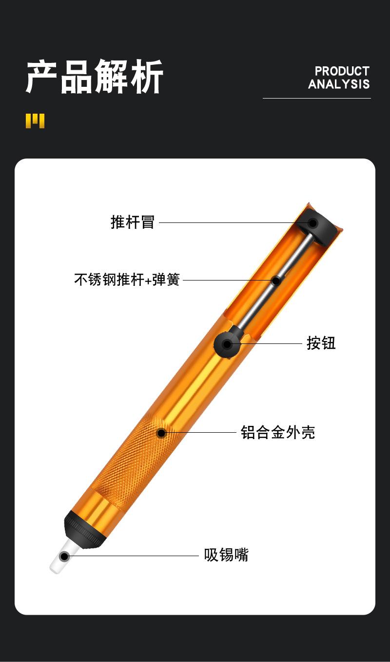 Nota: El dispositivo de succión de soldadura está disponible en dorado, azul y negro, y se enviará aleatoriamente~