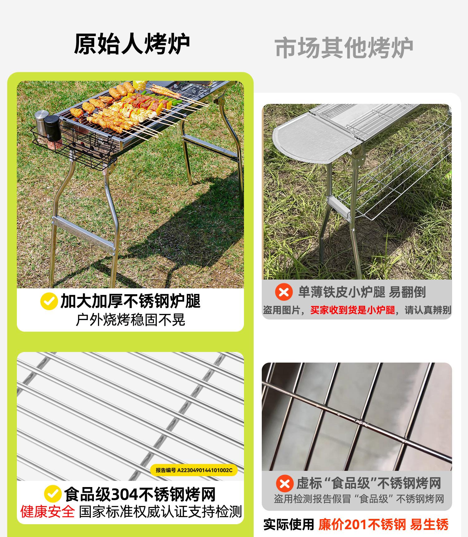 Parrilla de barbacoa grande para exteriores, de acero inoxidable, plegable, portátil, para uso doméstico, con horno de carbón