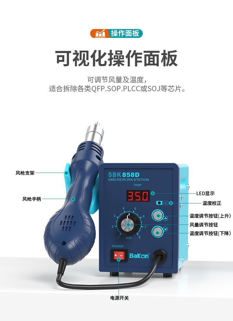 Luz Blanca Sbk858D Estación Desoldadora de Temperatura Constante al por Mayor Alta Potencia Pantalla Digital Estación de Soldadura Pistola de Aire Caliente Soldador para Reparación de Teléfonos Móviles