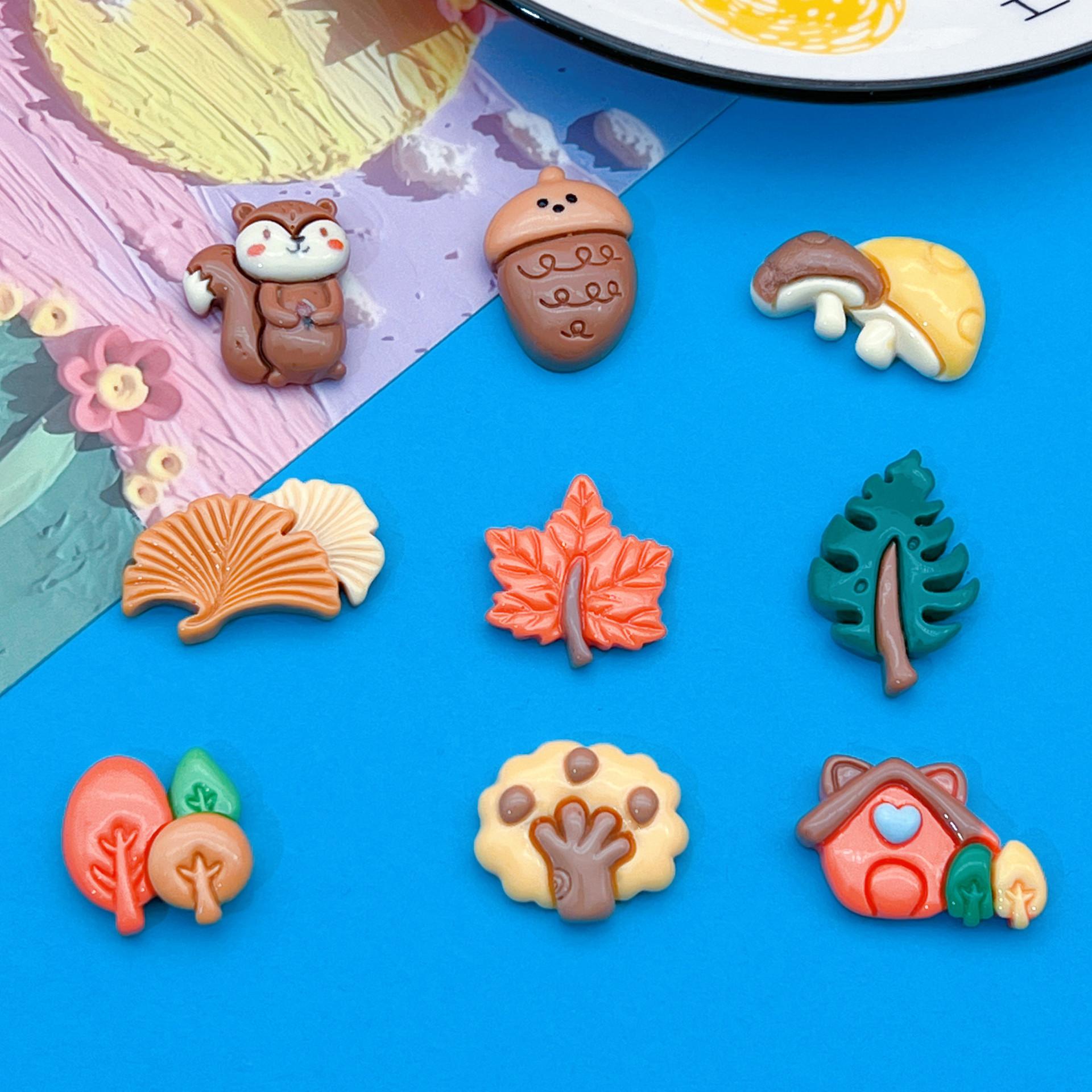 Ardilla Maillard brillante, hoja de arce, redes de pino, crema casera, gel, accesorios para el cabello, taza de agua, funda de teléfono, parche de resina, accesorios