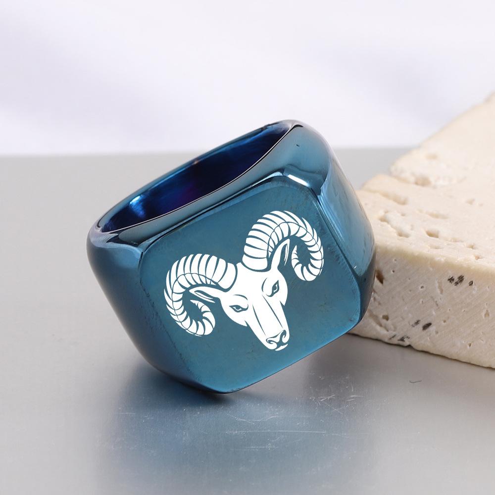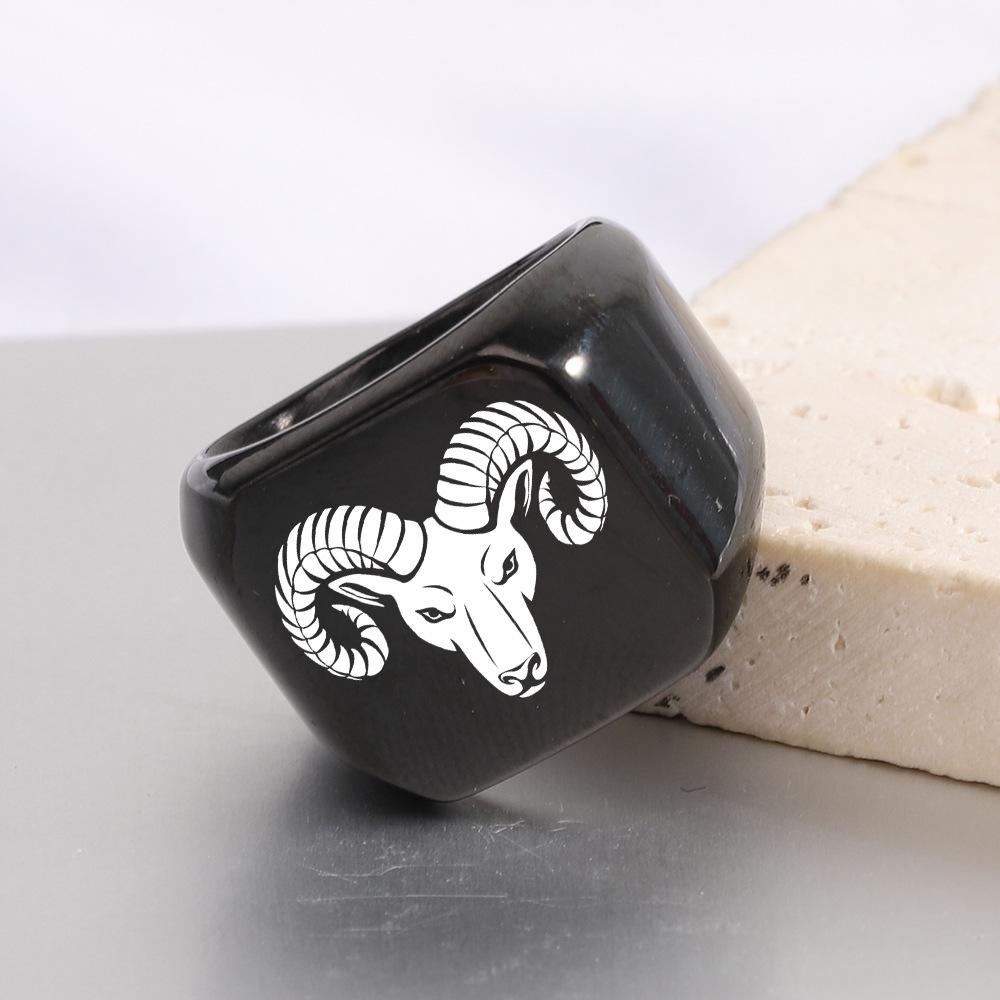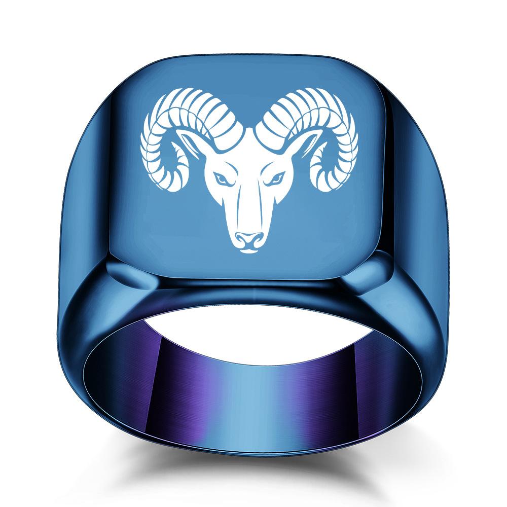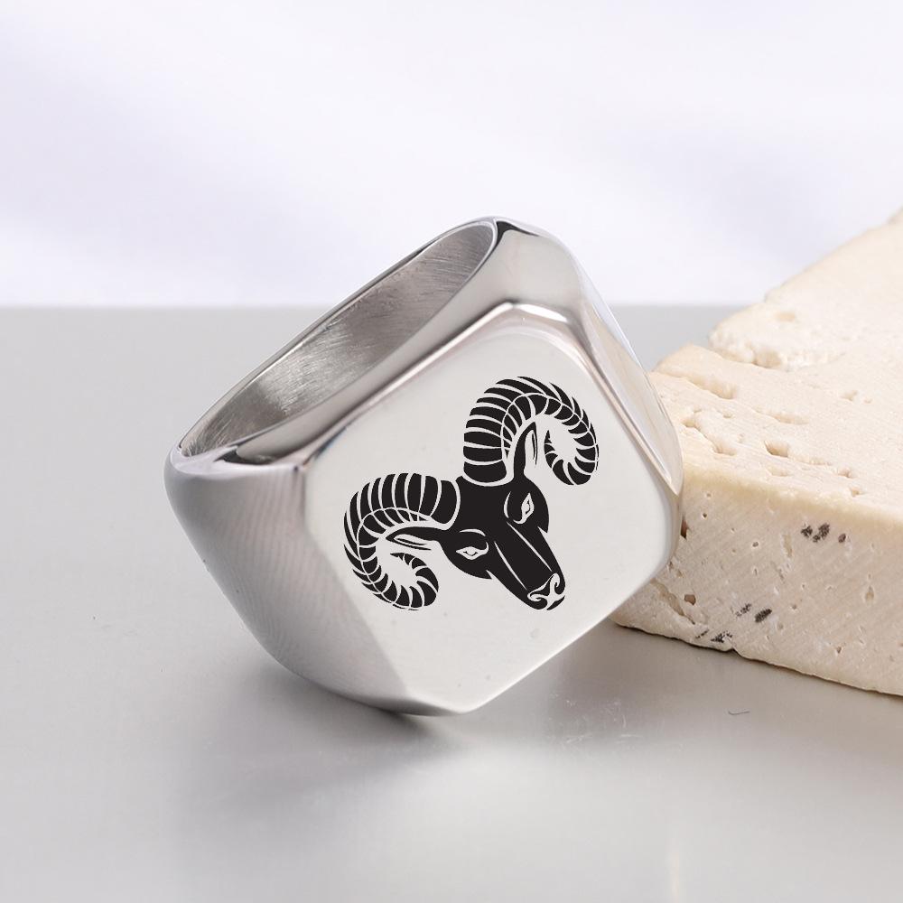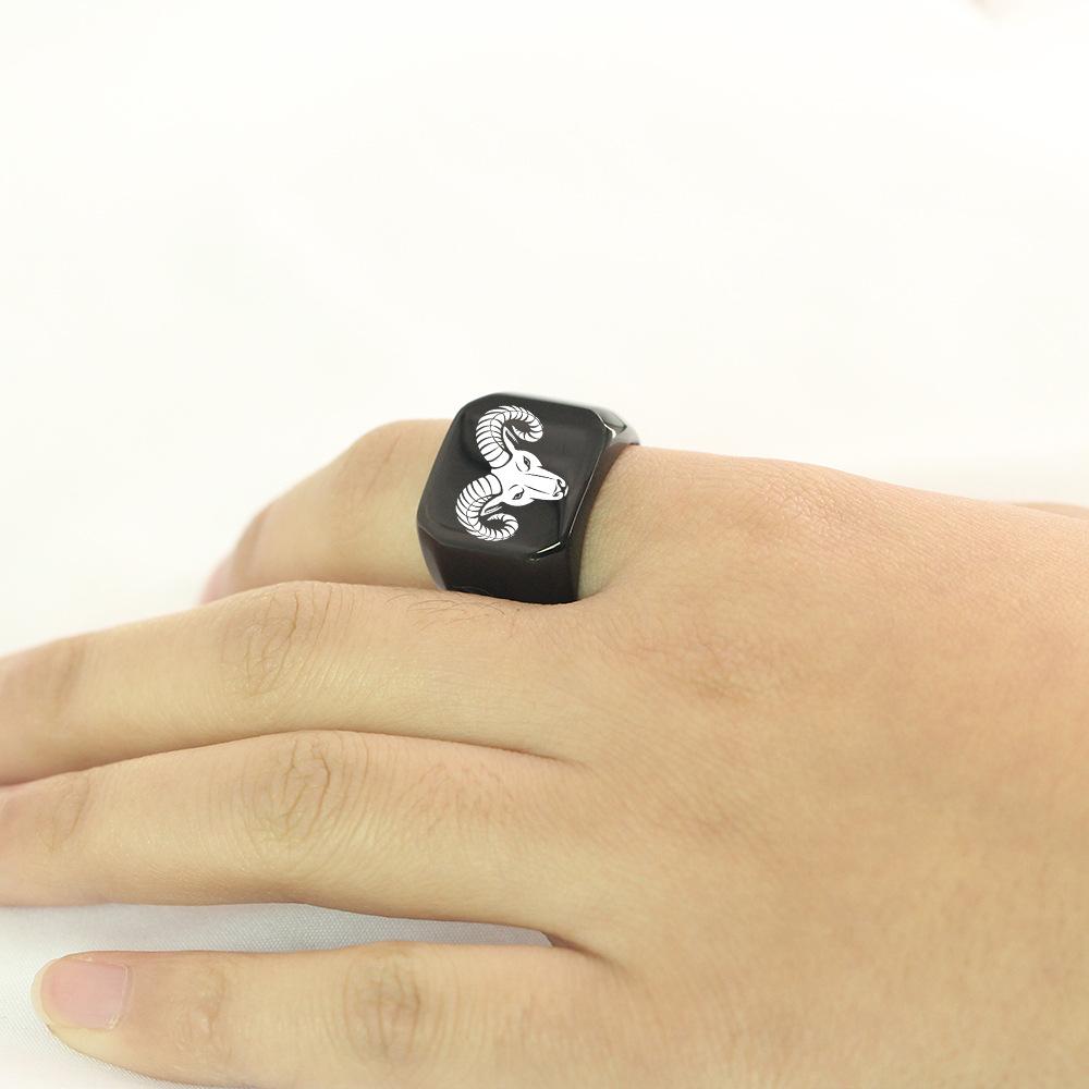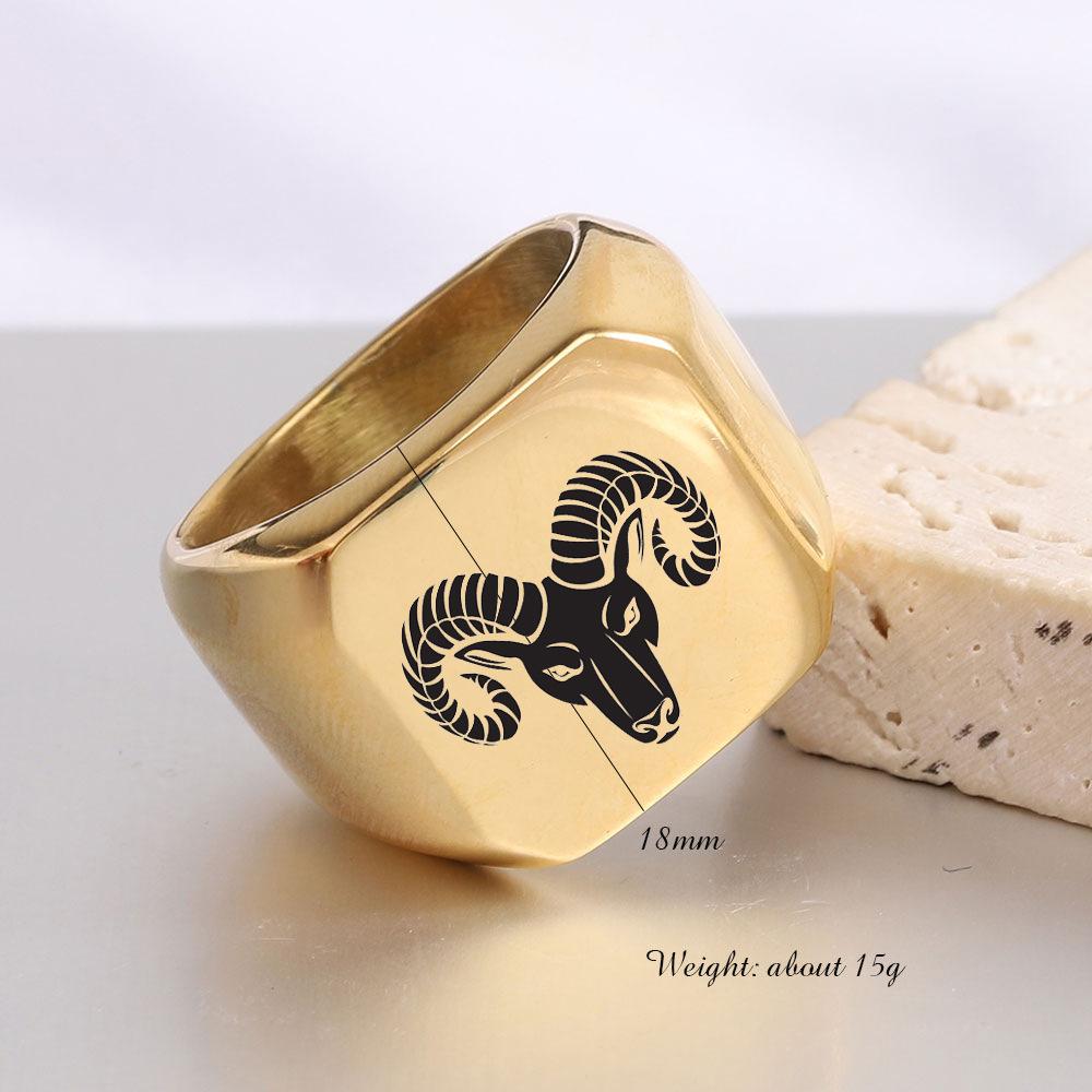 Anillo de acero de titanio con cabeza de vaca creativa europea y americana para hombre, retro punk cuadrado de 18 mm, estudiante, marea, anillo para hombre al por mayor