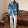 Chaqueta vaquera vintage estilo americano para hombre, chaqueta informal holgada de otoño para adolescentes, chaqueta holgada de marca de moda que combina con todo.