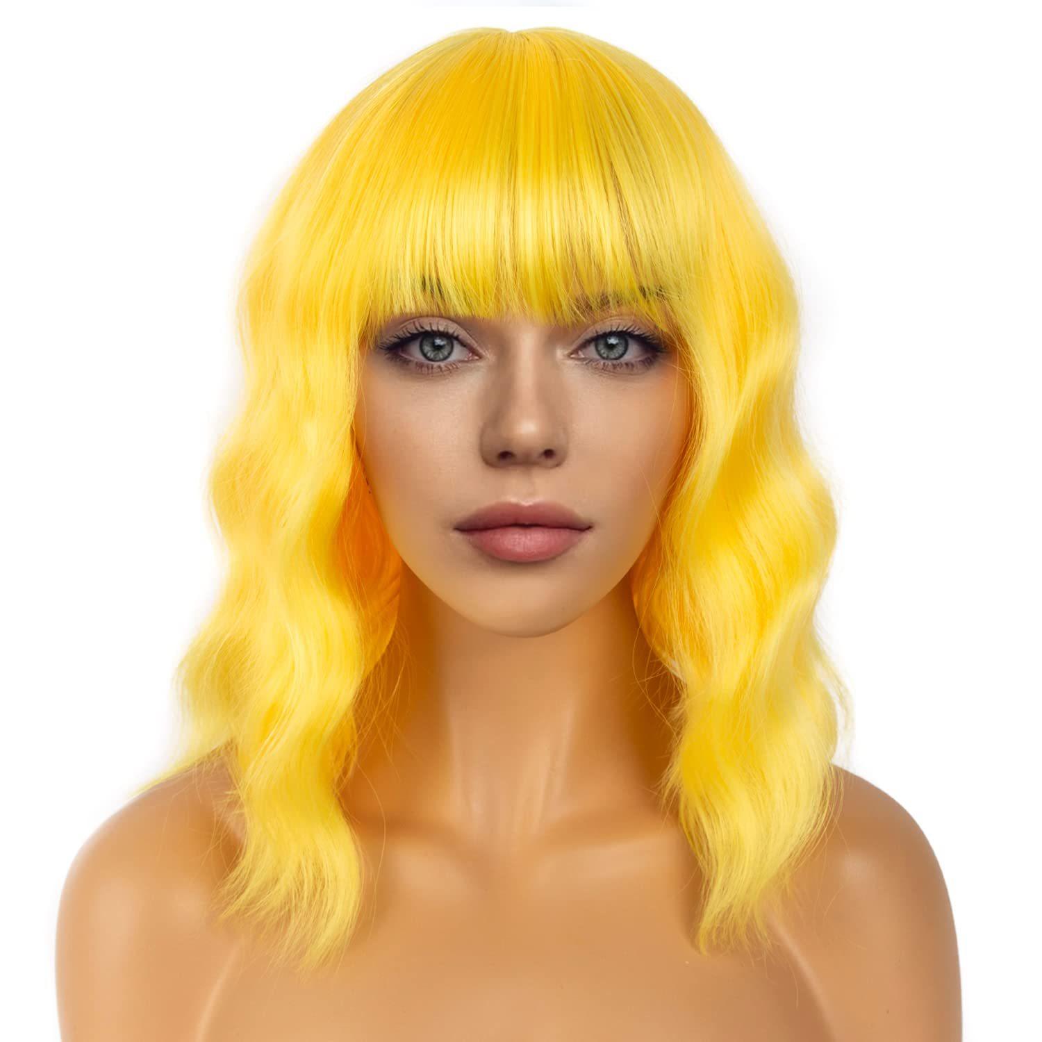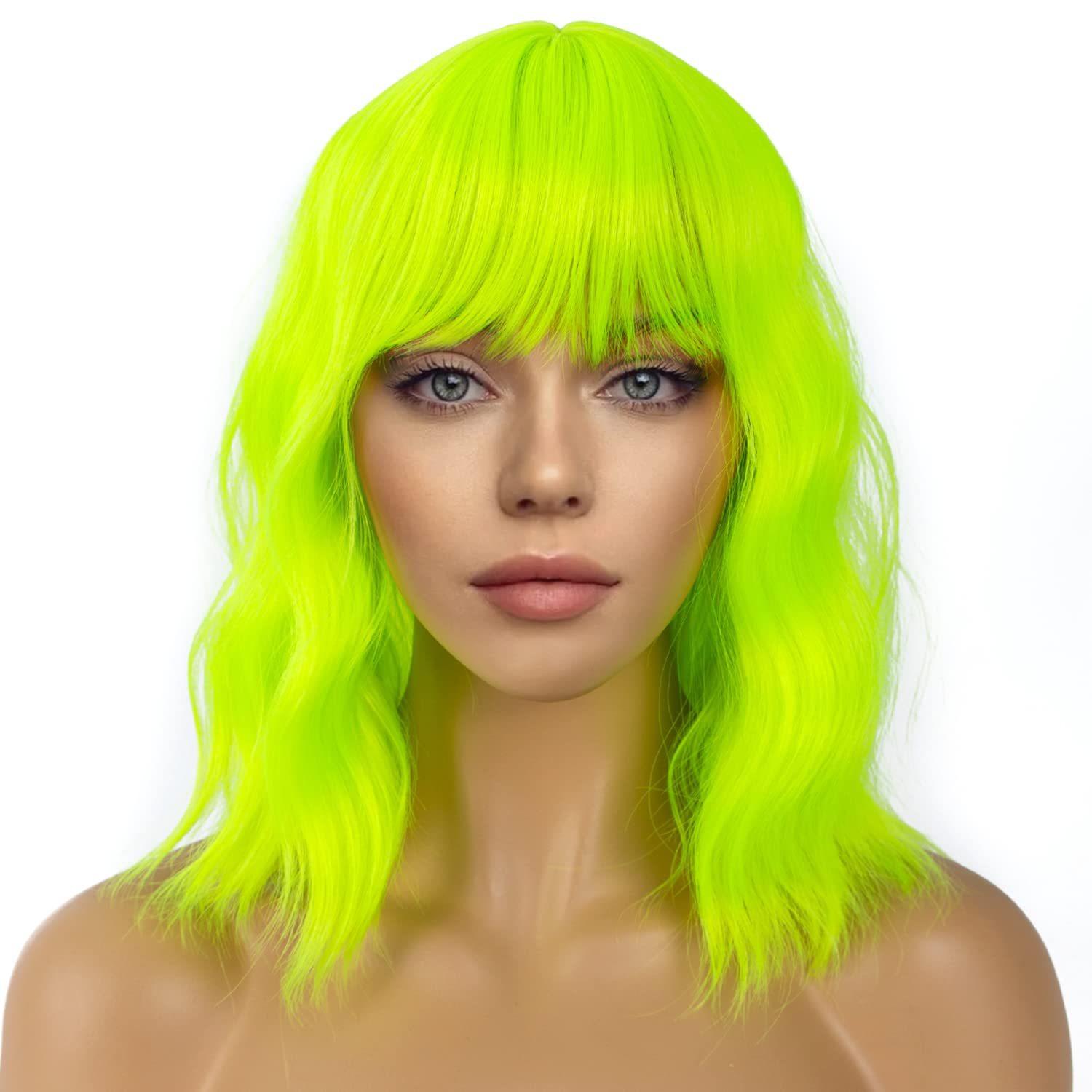 Pelucas Transfronterizas de Amazon Pelucas Europeas y Americanas para Festival Cosplay Onda de Agua Cabello Corto Rizado Pelucas para Mujer Cabeza Completa Fluorescente