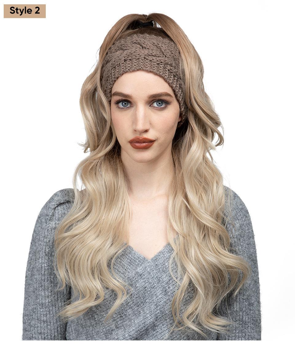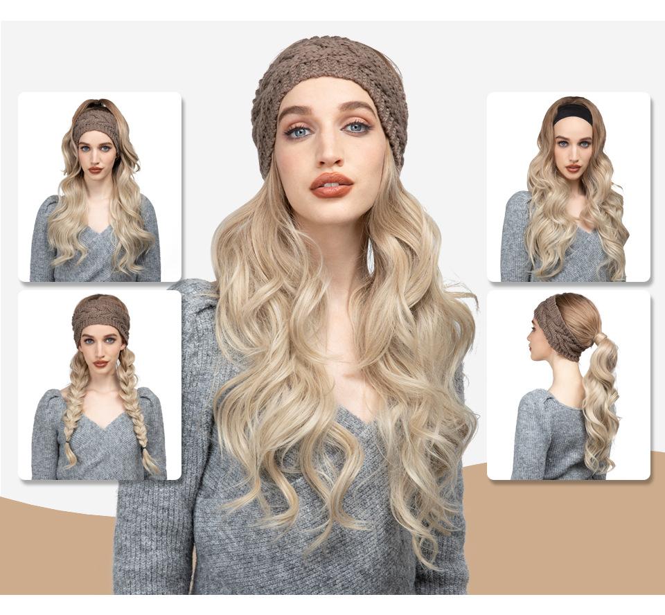 Nueva peluca europea y americana para mujer, lana rizada, diadema tejida blanca, cobertura de media cabeza, peluca de fibra química