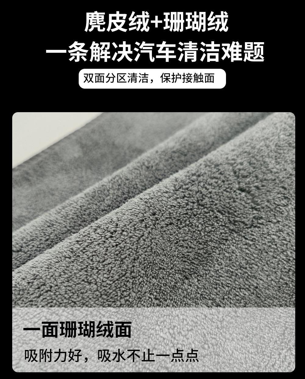 Toalla de lavado de coche de gamuza gruesa de doble cara con paño mágico de vellón coral, toalla de microfibra absorbente para coche