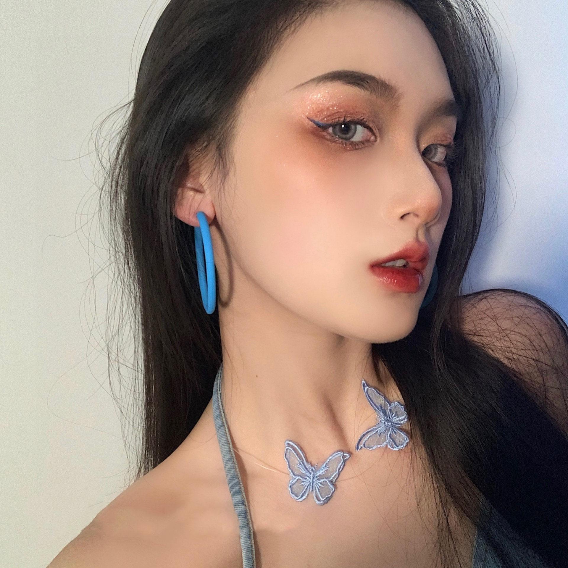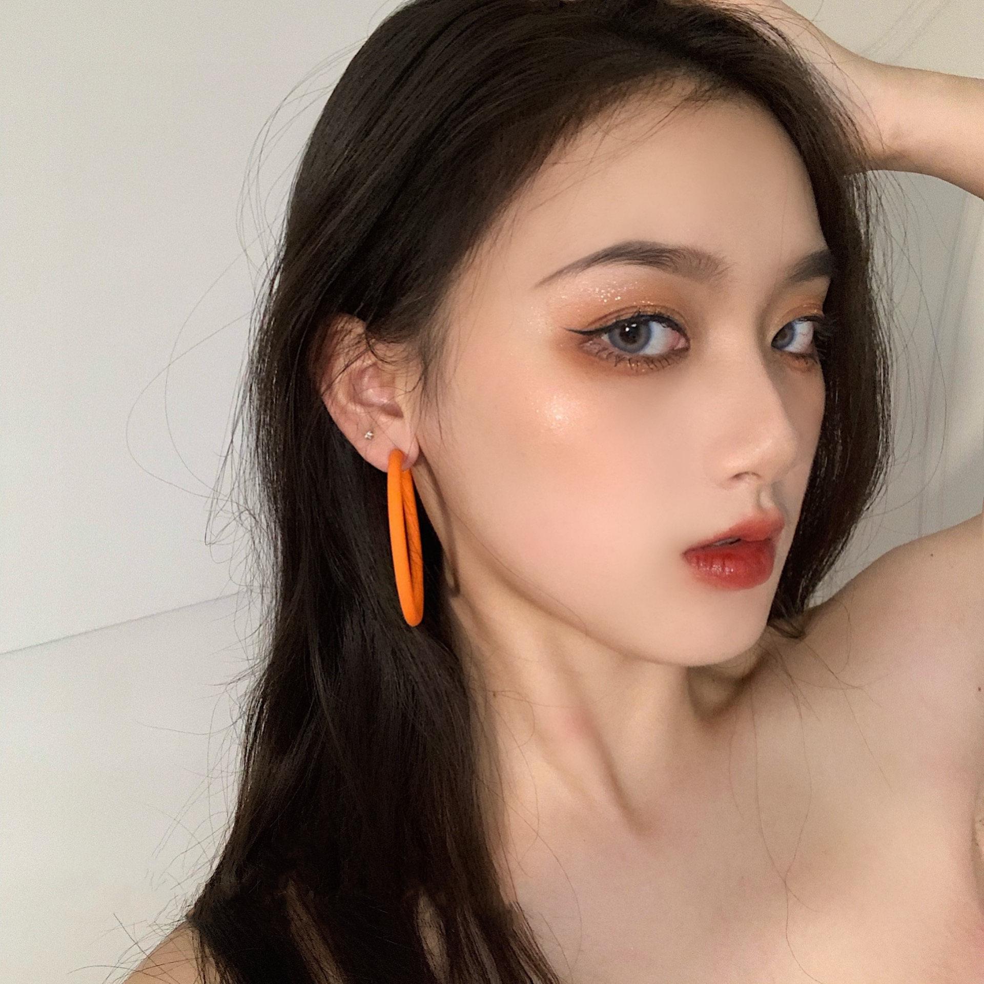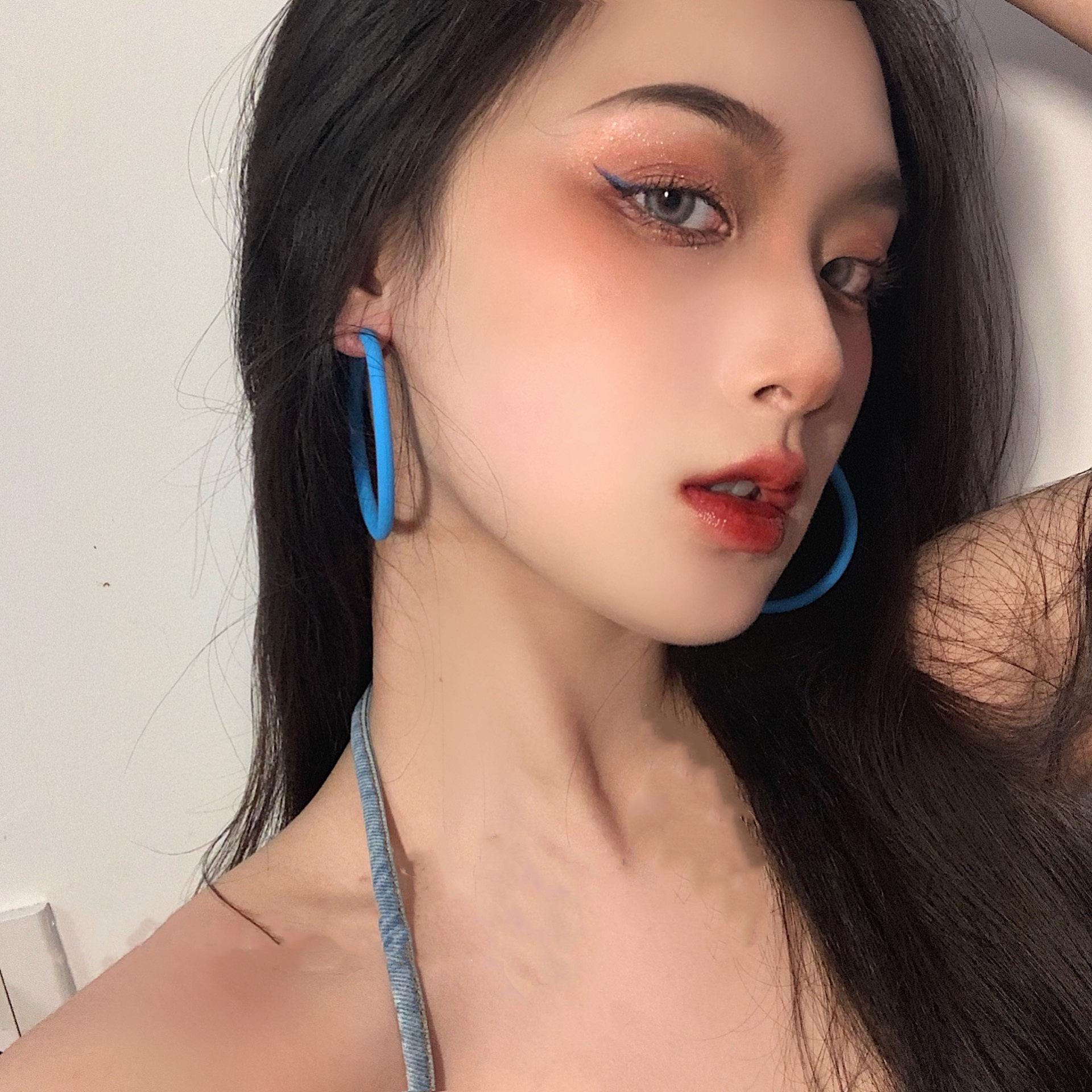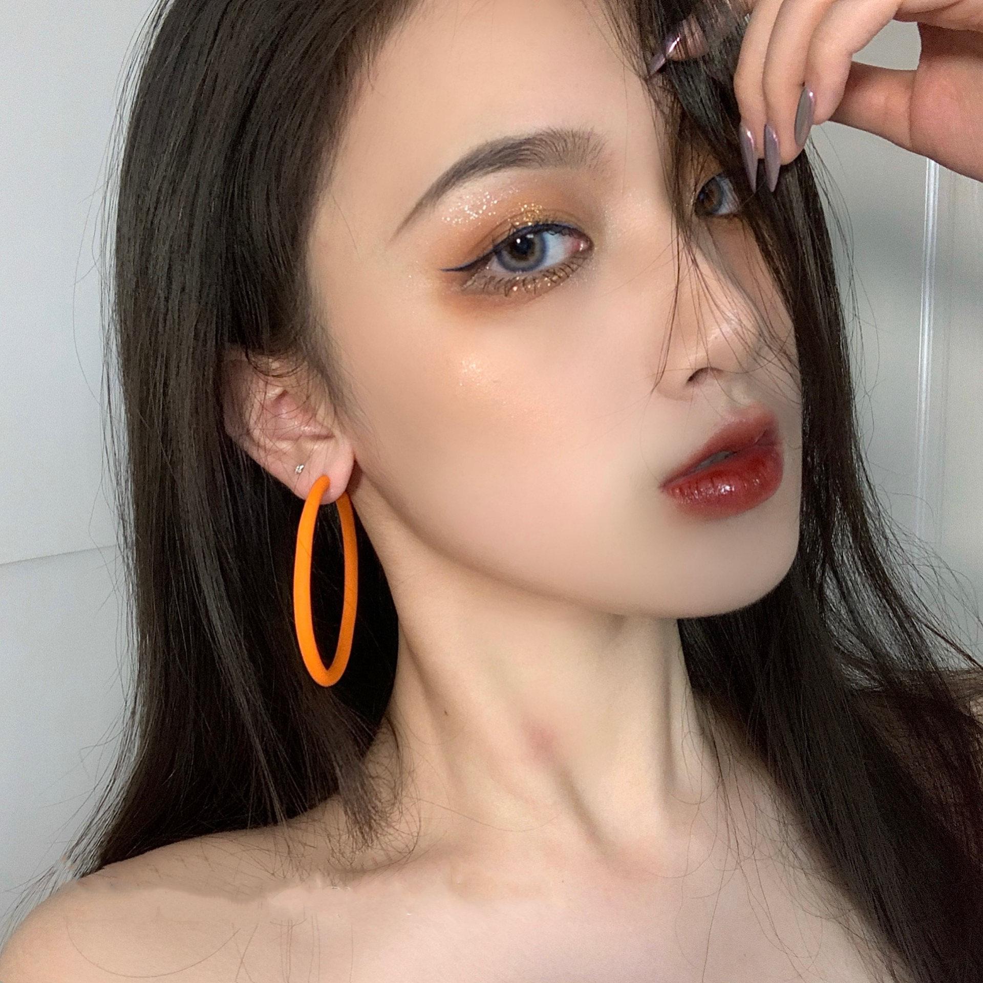 Aretes de Aro Grandes Coloridos Exagerados Coreanos para Mujer 2025 Nuevos Aretes de Celebridad de Internet Modernos y Elegantes Accesorios Simples para las Orejas