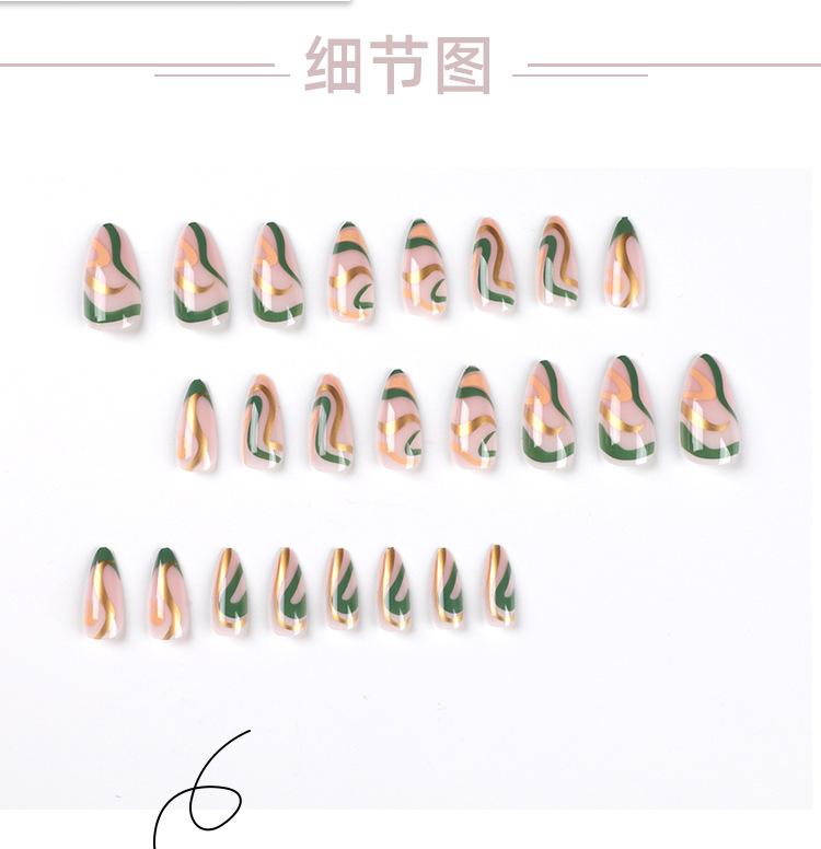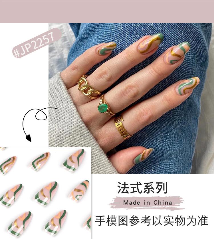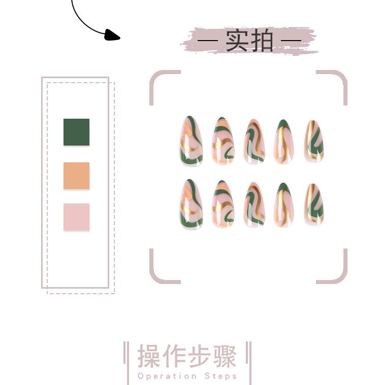 Use manicura al por mayor simple marrón verde onda uña postiza pieza al por mayor parche de uña pieza de uña europea y americana
