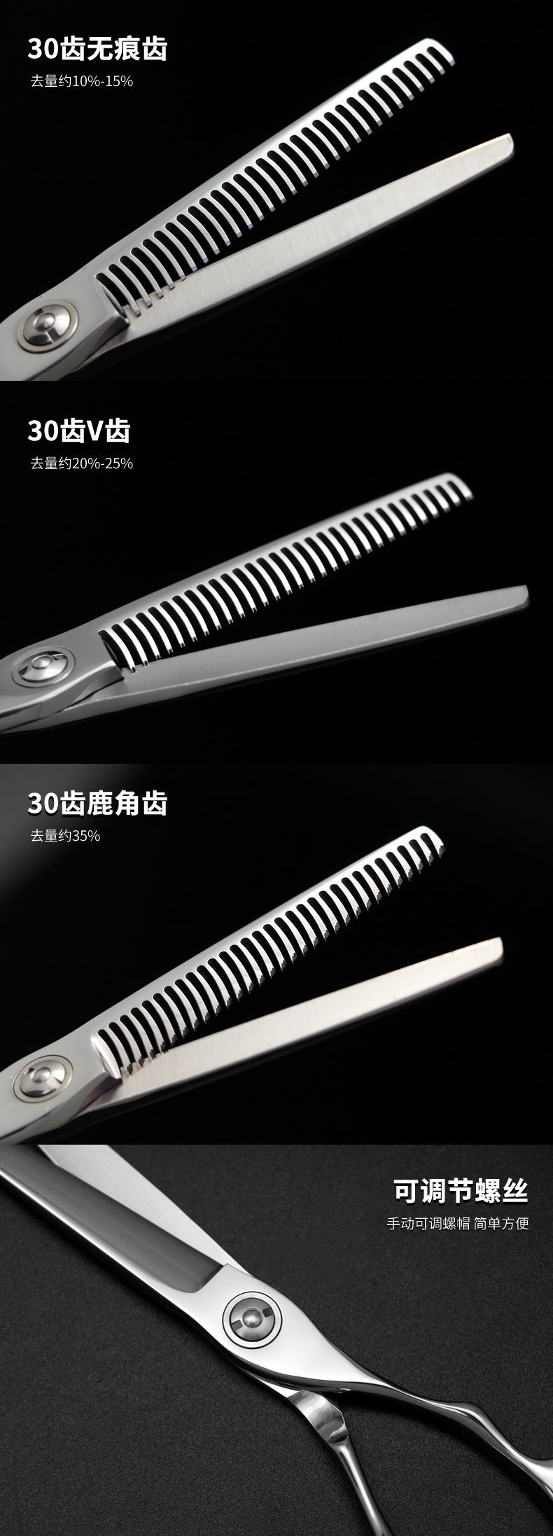 Tipo de dientes de las tijeras:dividido principalmente:Dientes de asta, en forma de V, en forma de T (sin rastro),Dientes en forma de espina de pescado, dientes biselados, etc.