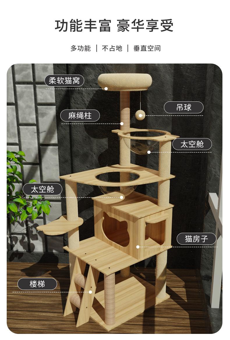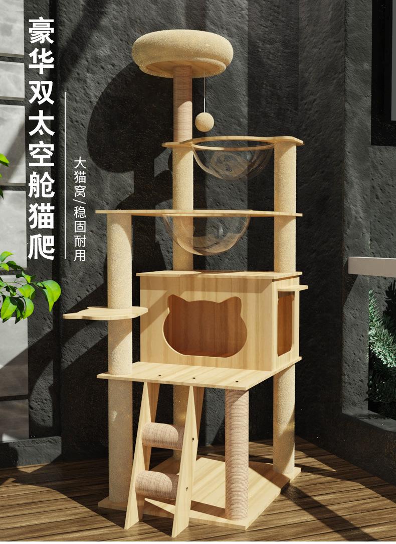 Marco de escalada para gatos Lefei, nido para gatos que no ocupa espacio, cápsula, árbol para gatos, estante grande de madera integrado, casa para gatos, columna de agarre para gatos