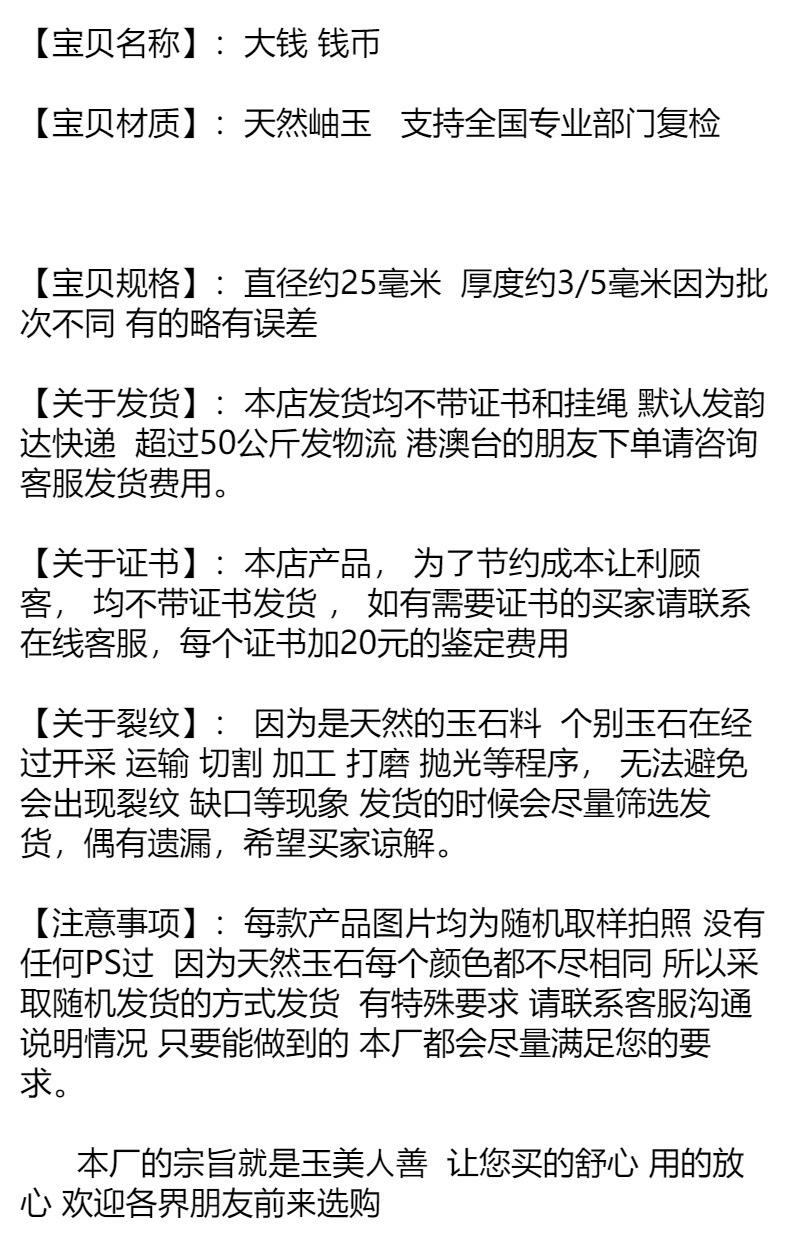 Xiuyu gran dinero Jade moneda antigua colgante al por mayor colgante accesorios hechos a mano apertura inauguración de la casa Liang puesto Jade Jade dinero