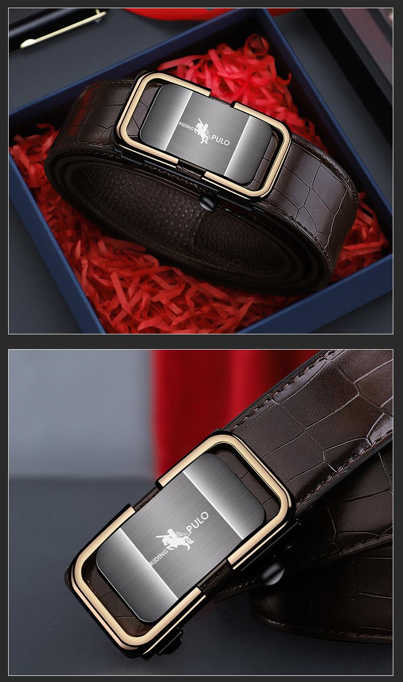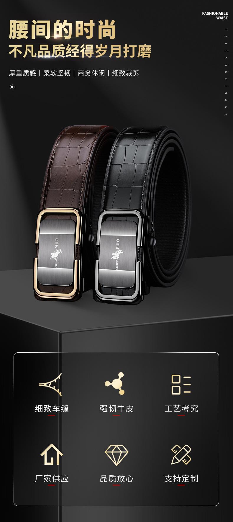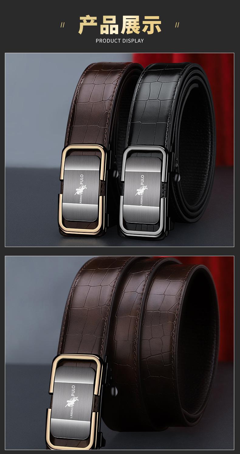 Car line crocodile pattern tuhao gold coffee belt, Car line crocodile tungsten steel gun black belt