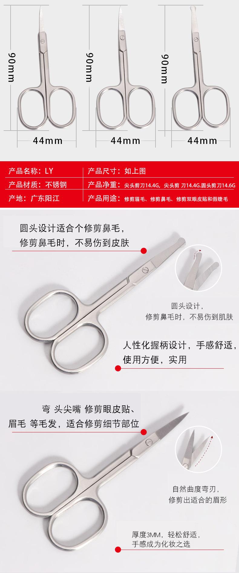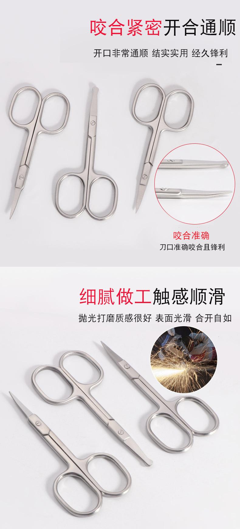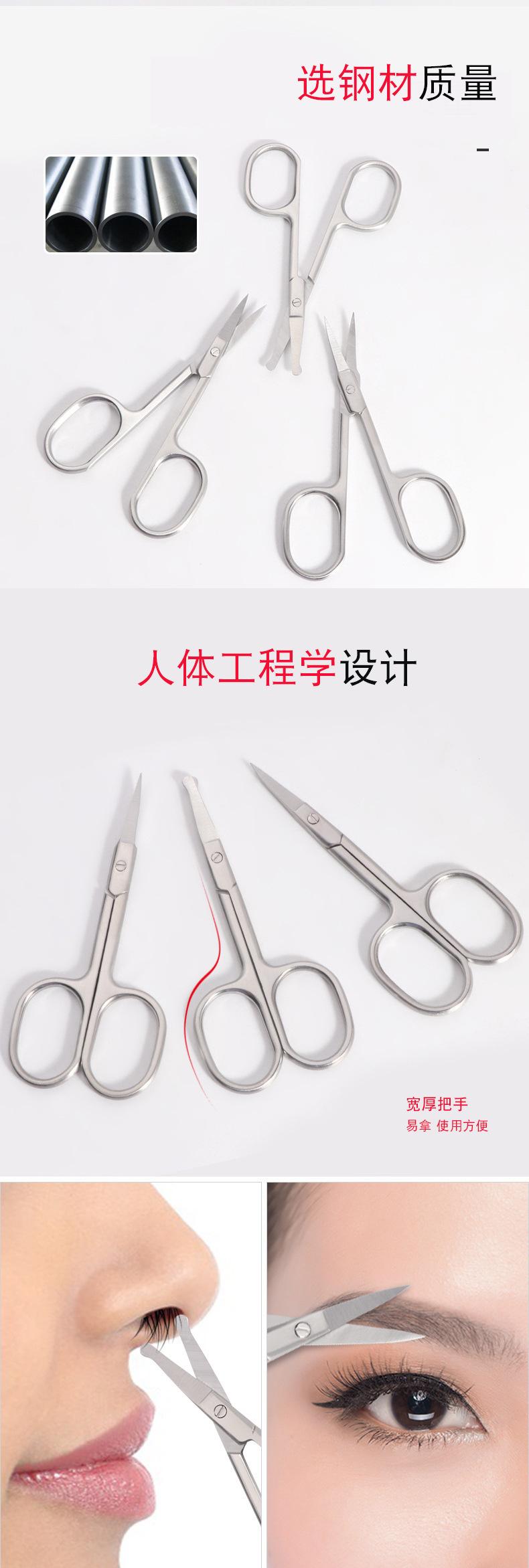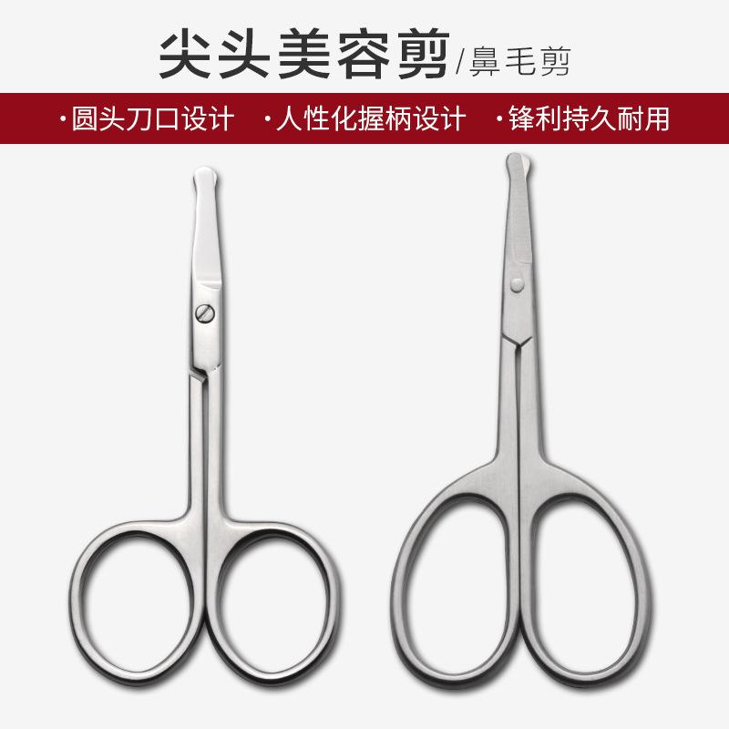 Tijeras de belleza para vello nasal de acero inoxidable de punta redonda y cabeza curva, de venta caliente, con boca de mordida ajustada, sensación cómoda, tijeras C