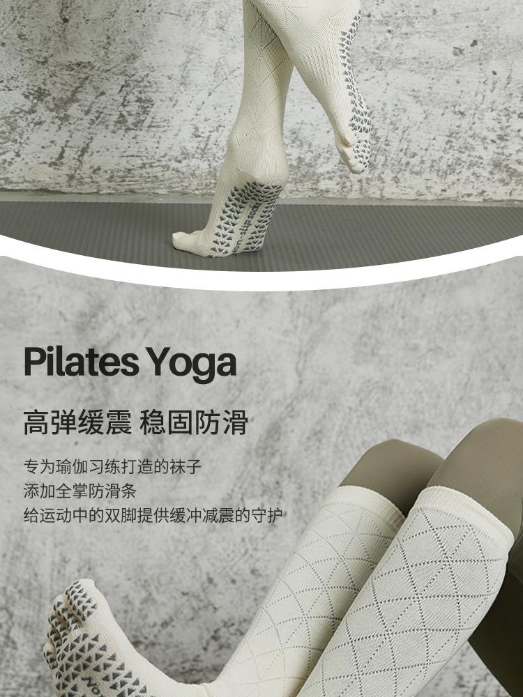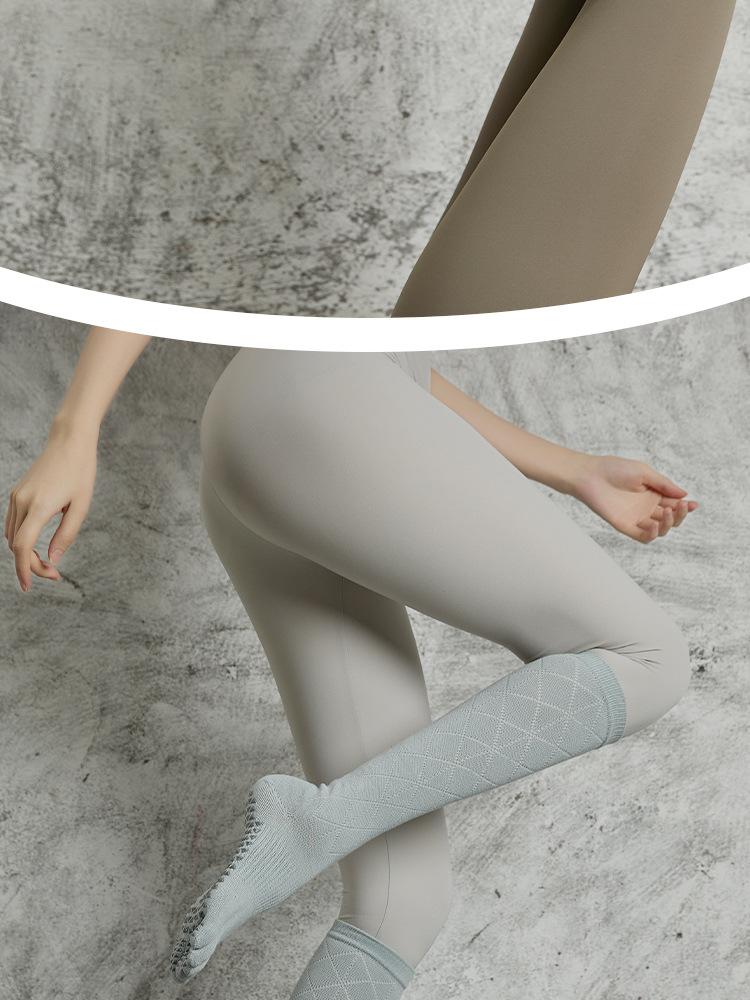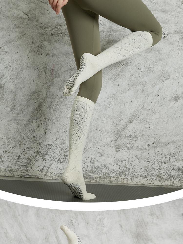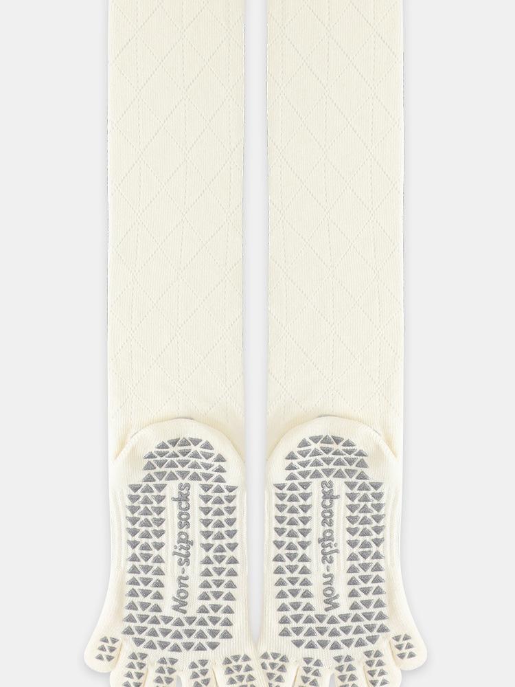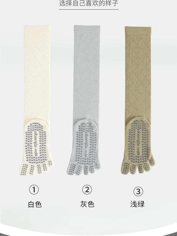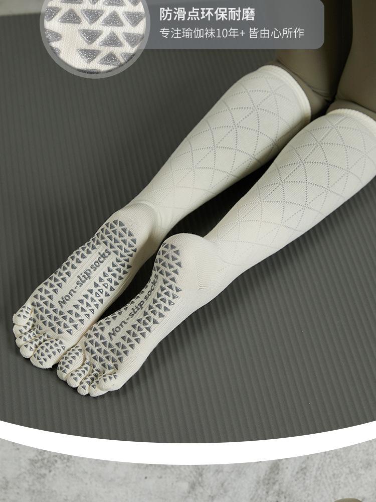 Calcetines de Yoga Nuevos Antideslizantes de Tubo Largo Profesionales de Cinco Dedos de Tubo Medio Calcetines Deportivos Calcetines de Pilates Algodón para Fitness de Primavera y Otoño para Mujer