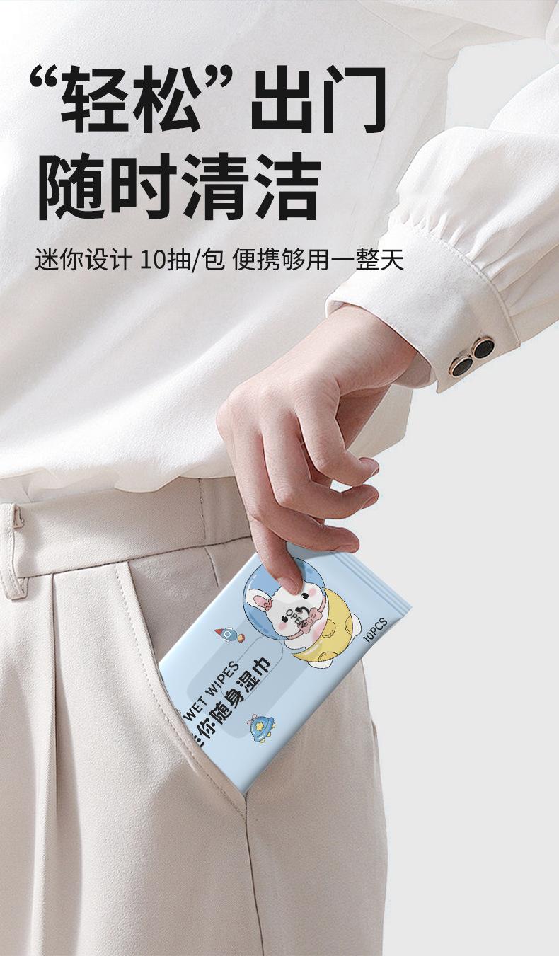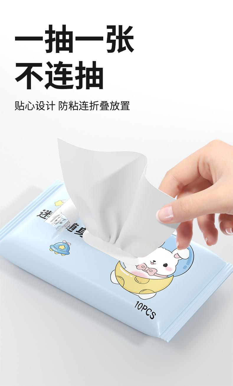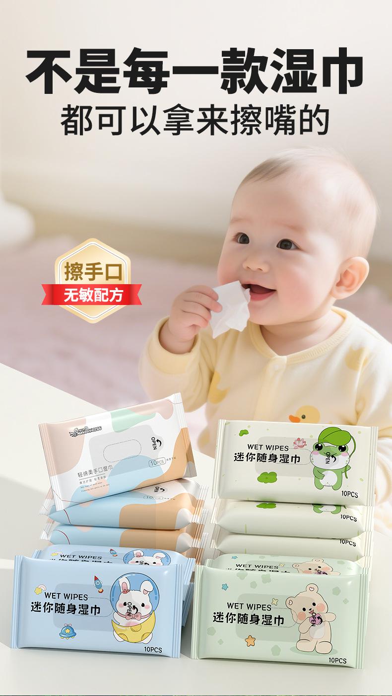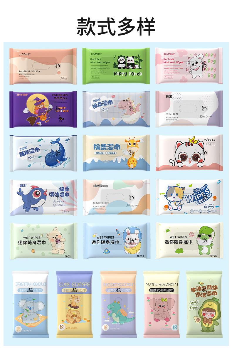 Toalla de mano de papel húmedo para bebés Venta al por mayor especial de diez piezas de papel húmedo portátil para niños Fábrica al por mayor para madres e hijos