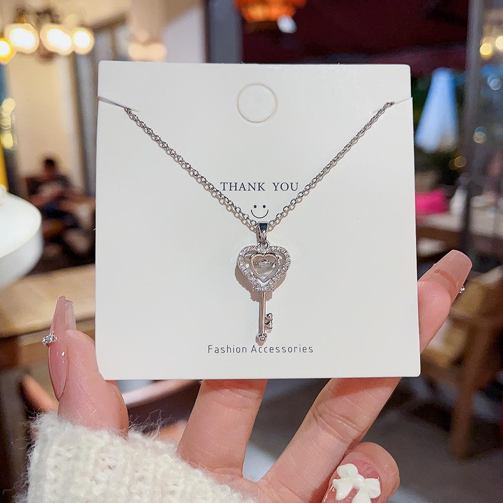 Colgante de microllave con personalidad de moda coreana para mujer, collar de cadena de clavícula de temperamento de lujo ligero, collar de acero de titanio Joker, venta al por mayor