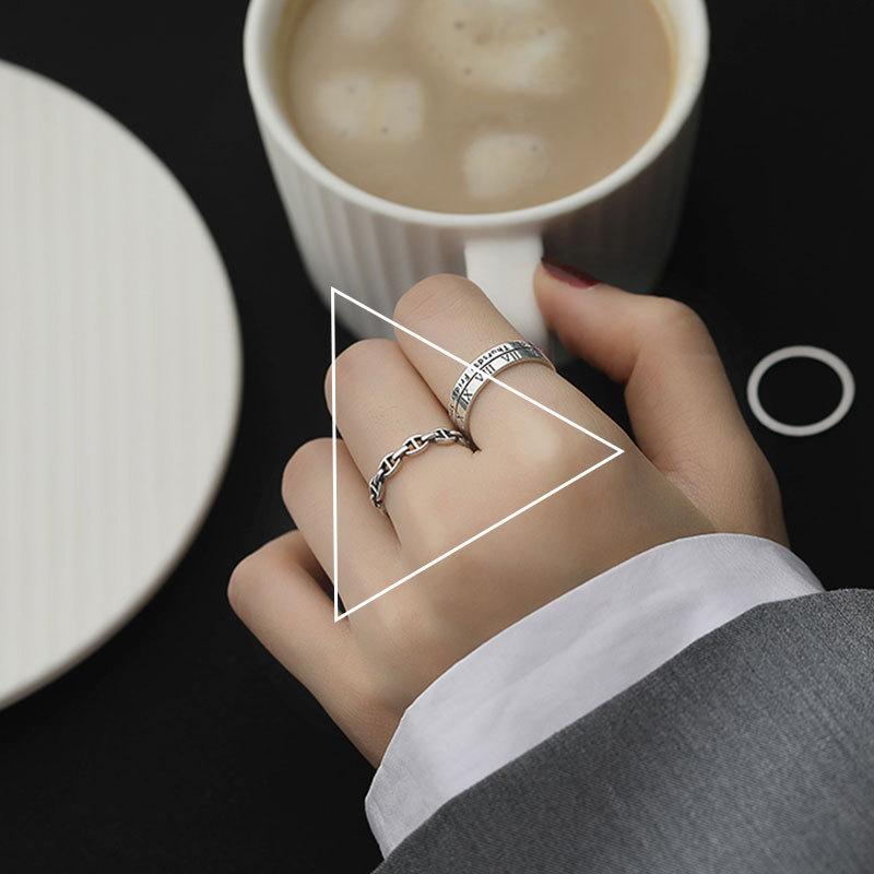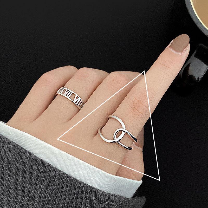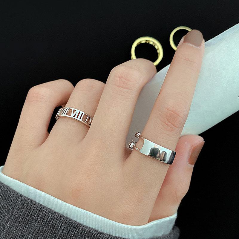 Anillo de plata de ley 925 con números romanos, moderno, personalizado, de lujo, con diseño moderno y abierto para mujer.