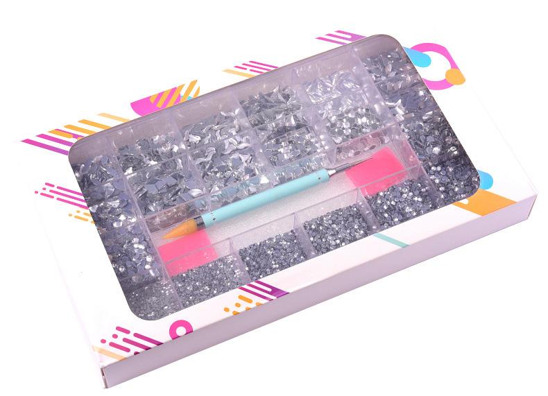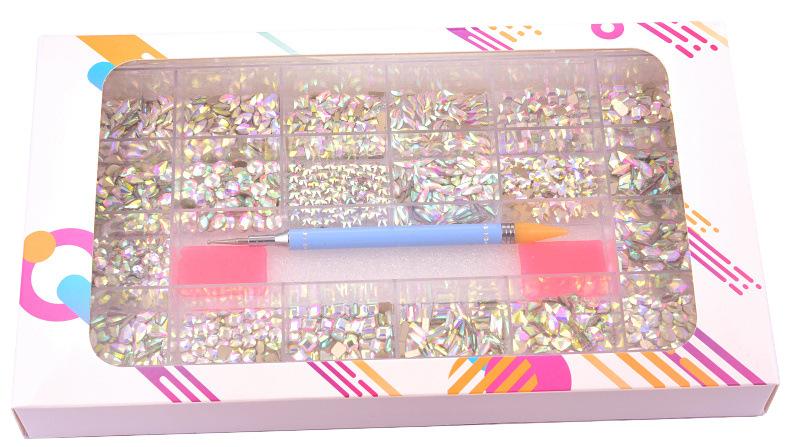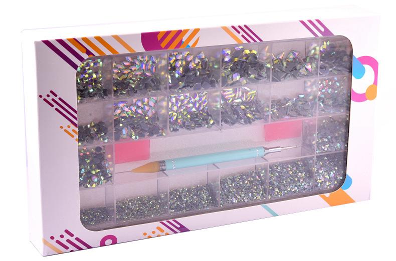 [Nombre del producto]: Diamantes para manicura en caja de 21 rejillas