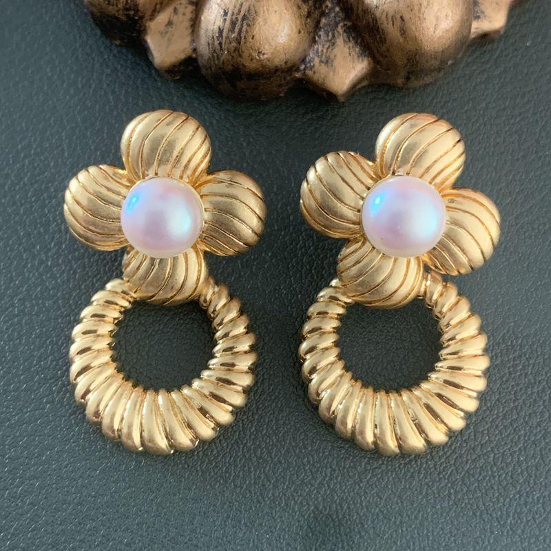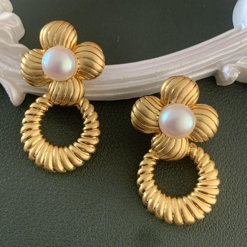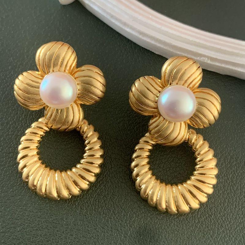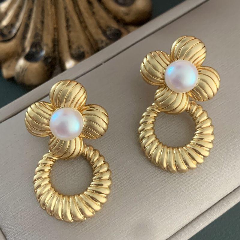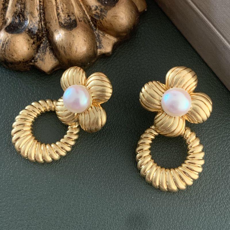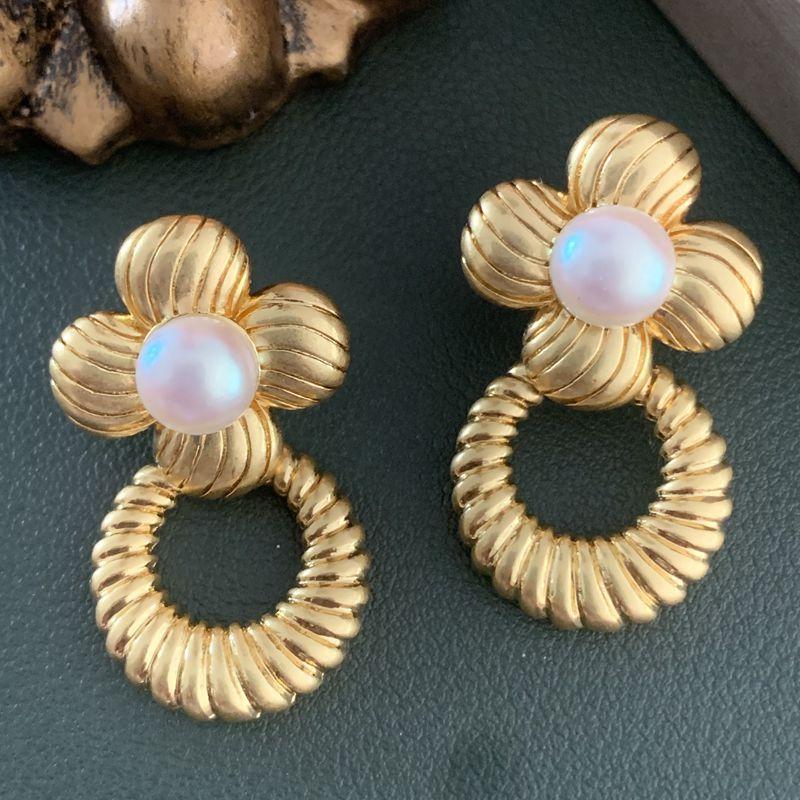 Pendientes elegantes de estilo francés con diseño de nicho de perlas para mujer, de moda, con aguja plateada, pendientes retro de flores sencillas