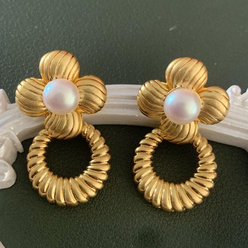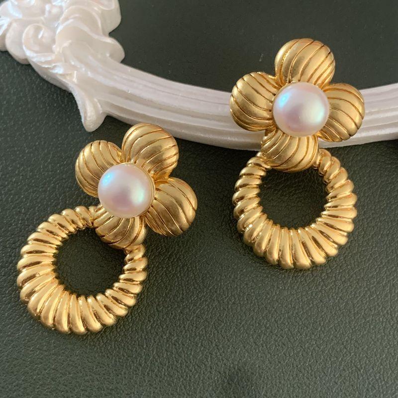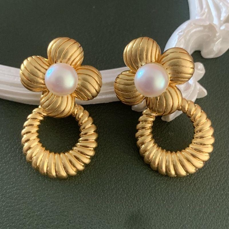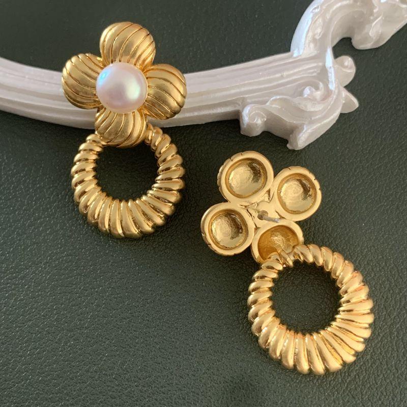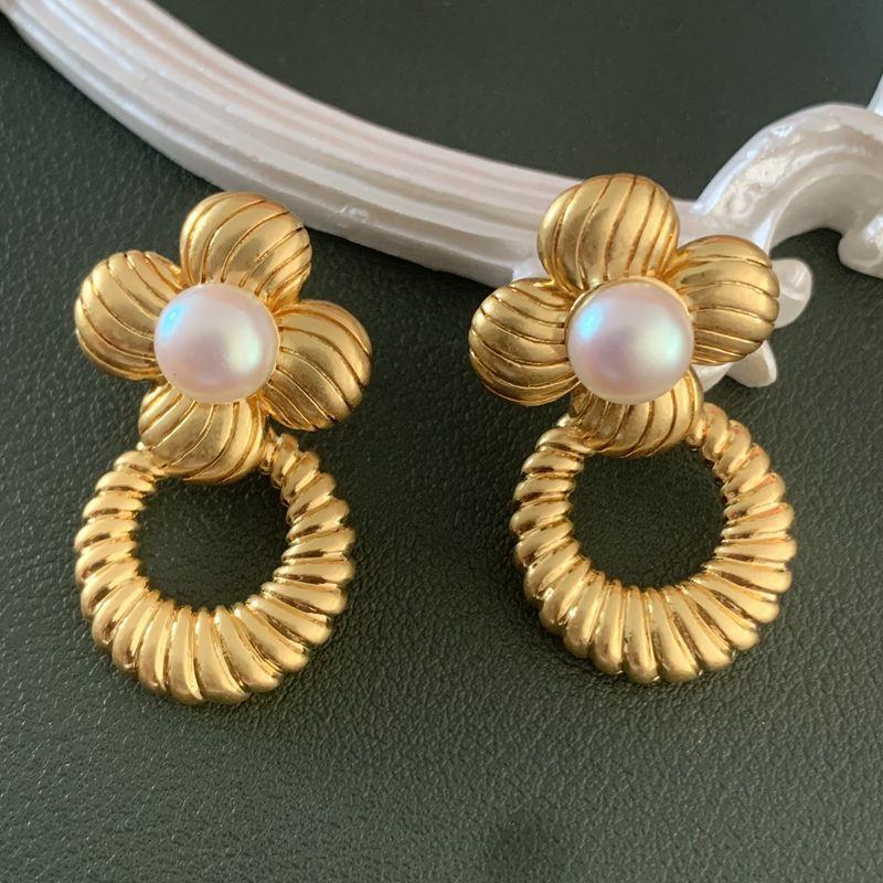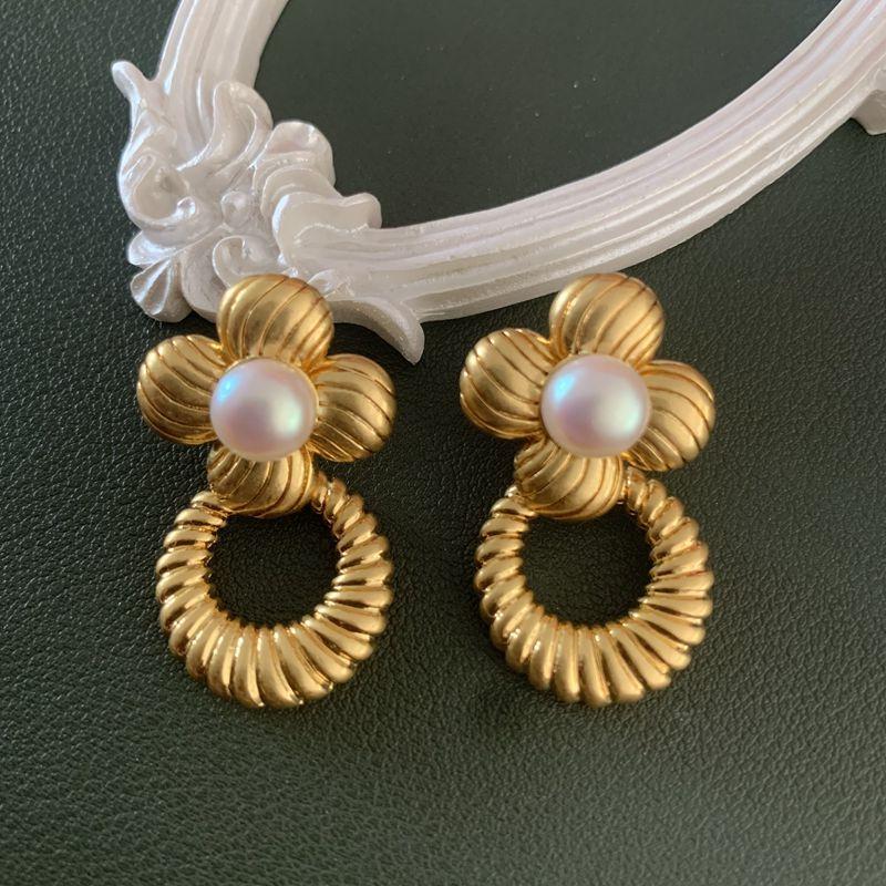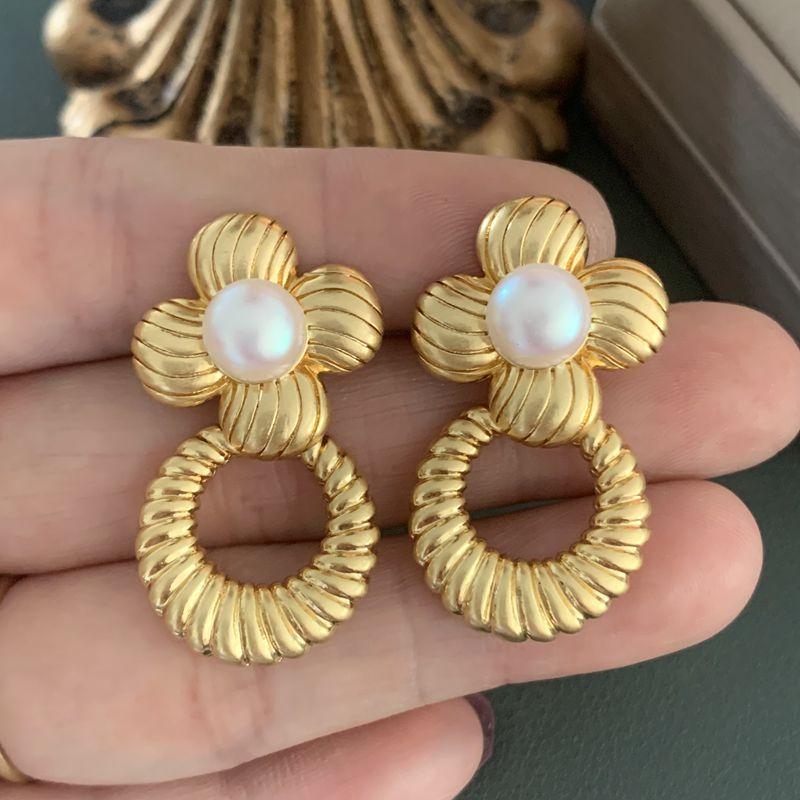 Pendientes elegantes de estilo francés con diseño de nicho de perlas para mujer, de moda, con aguja plateada, pendientes retro de flores sencillas