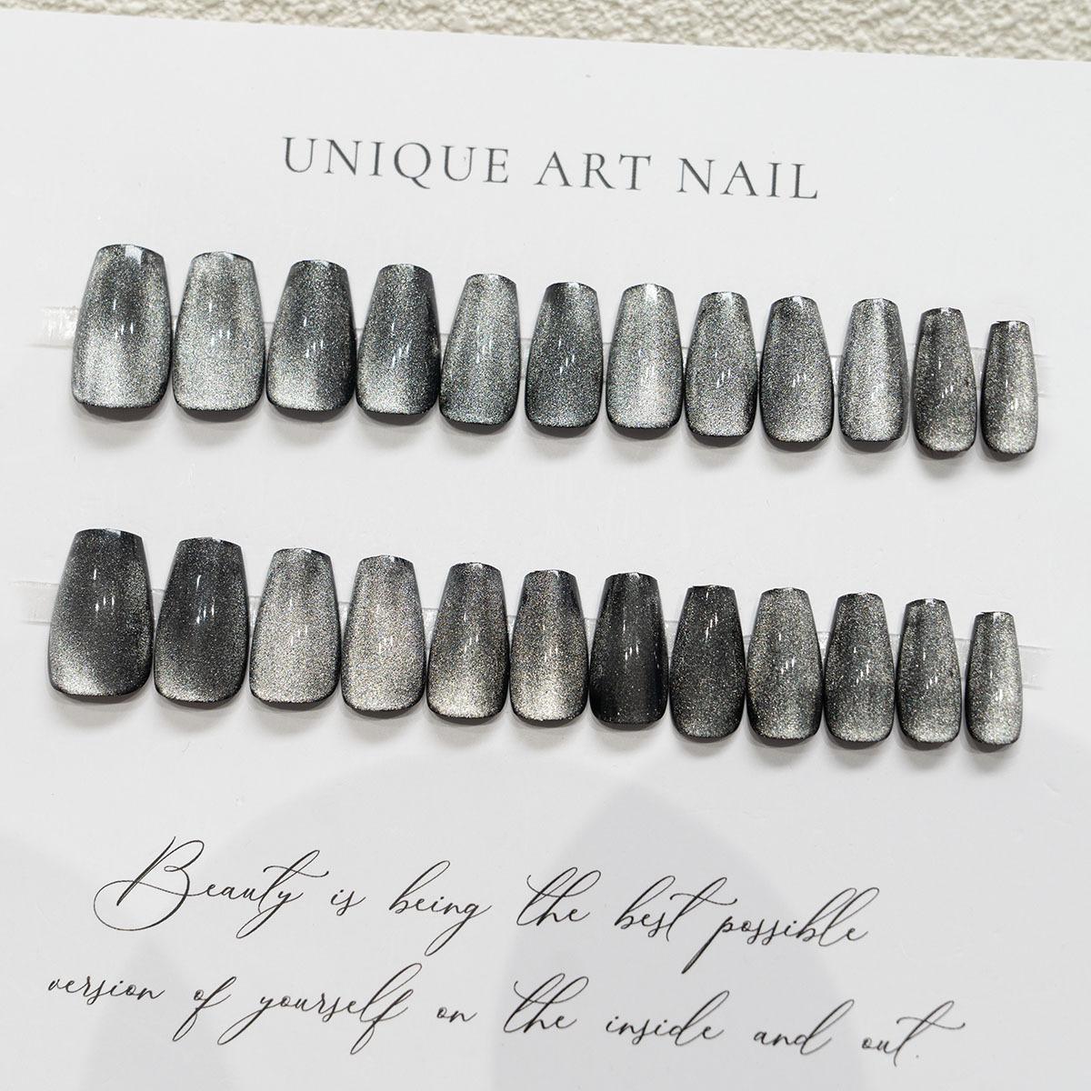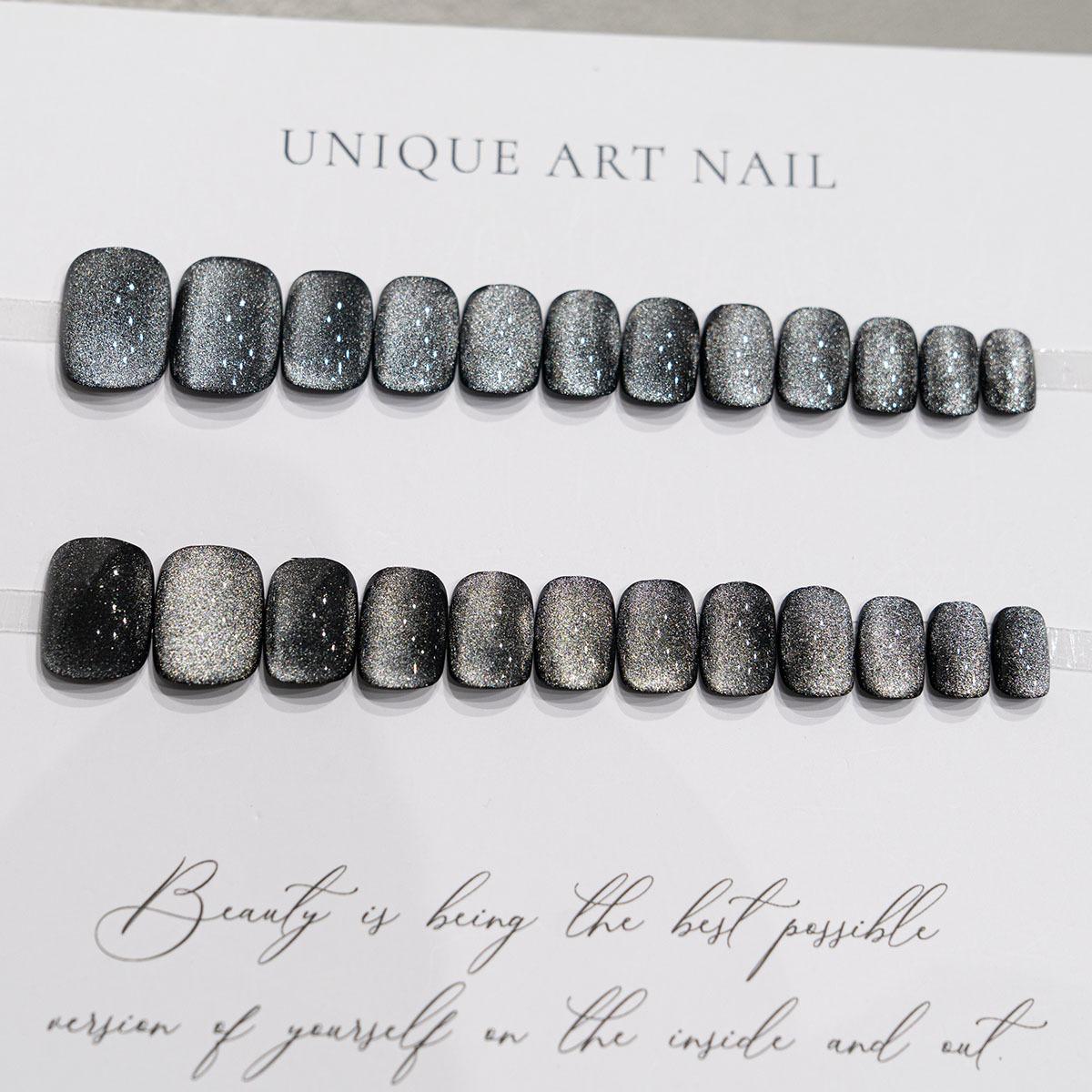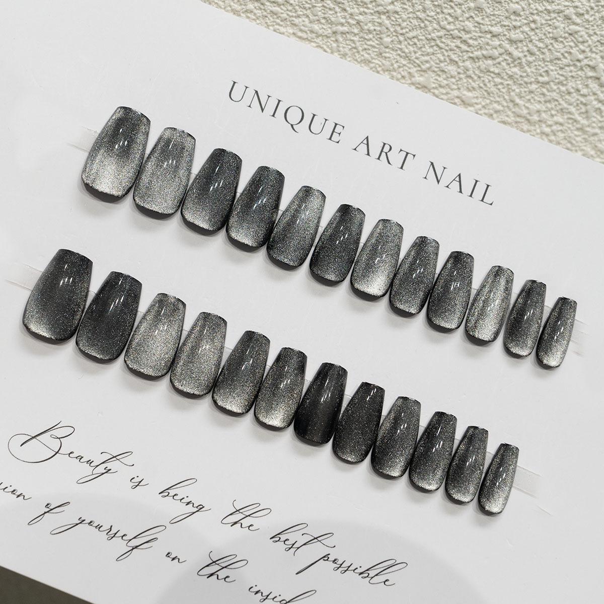 Bombilla pequeña de cristal de ojo de gato, color negro, para manicura, parche para uñas, uñas removibles, producto terminado en blanco, venta al por mayor