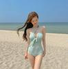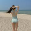 Traje de baño de una pieza sexy con cuello halter, color caramelo, sin espalda, adelgazante, para vacaciones en aguas termales, para mujer, 2024