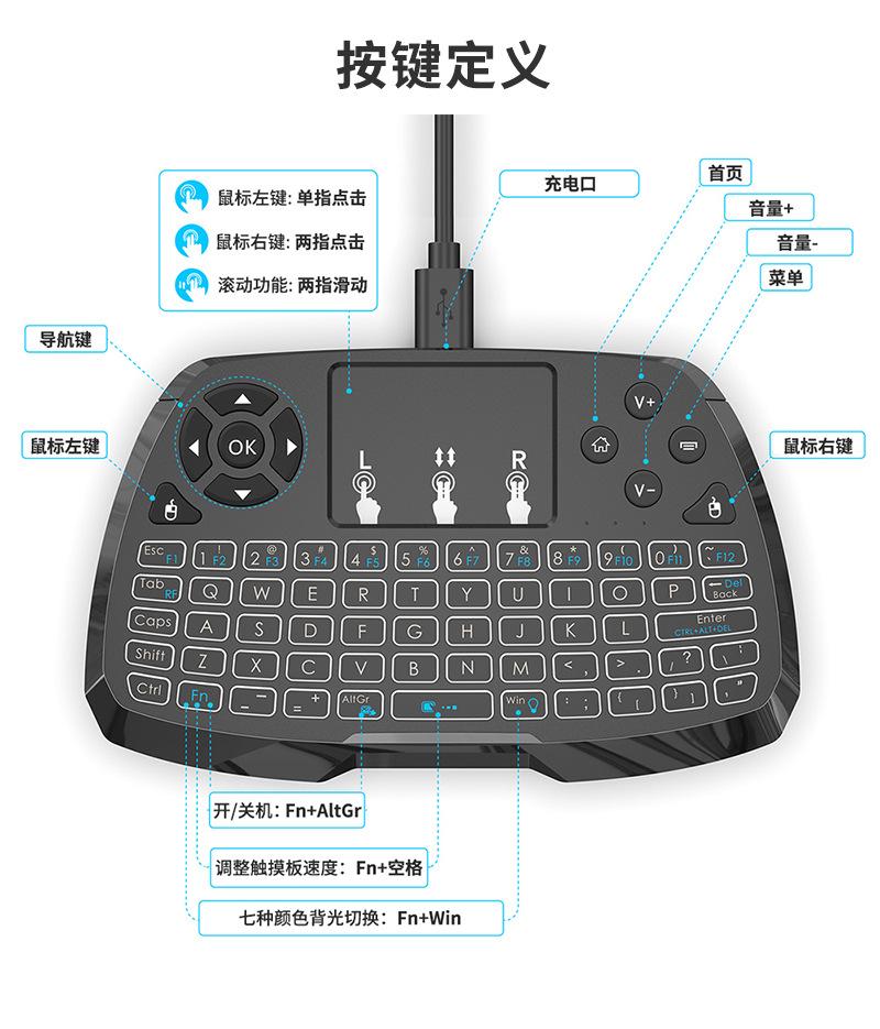Nuevo Modelo del Fabricante de Origen: Mini Teclado Recargable con Retroiluminación, Ratón Aéreo Inalámbrico, Ratón Pequeño Transfronterizo de Amazon